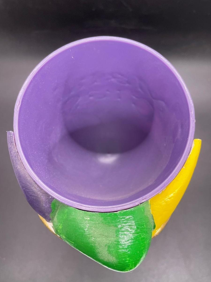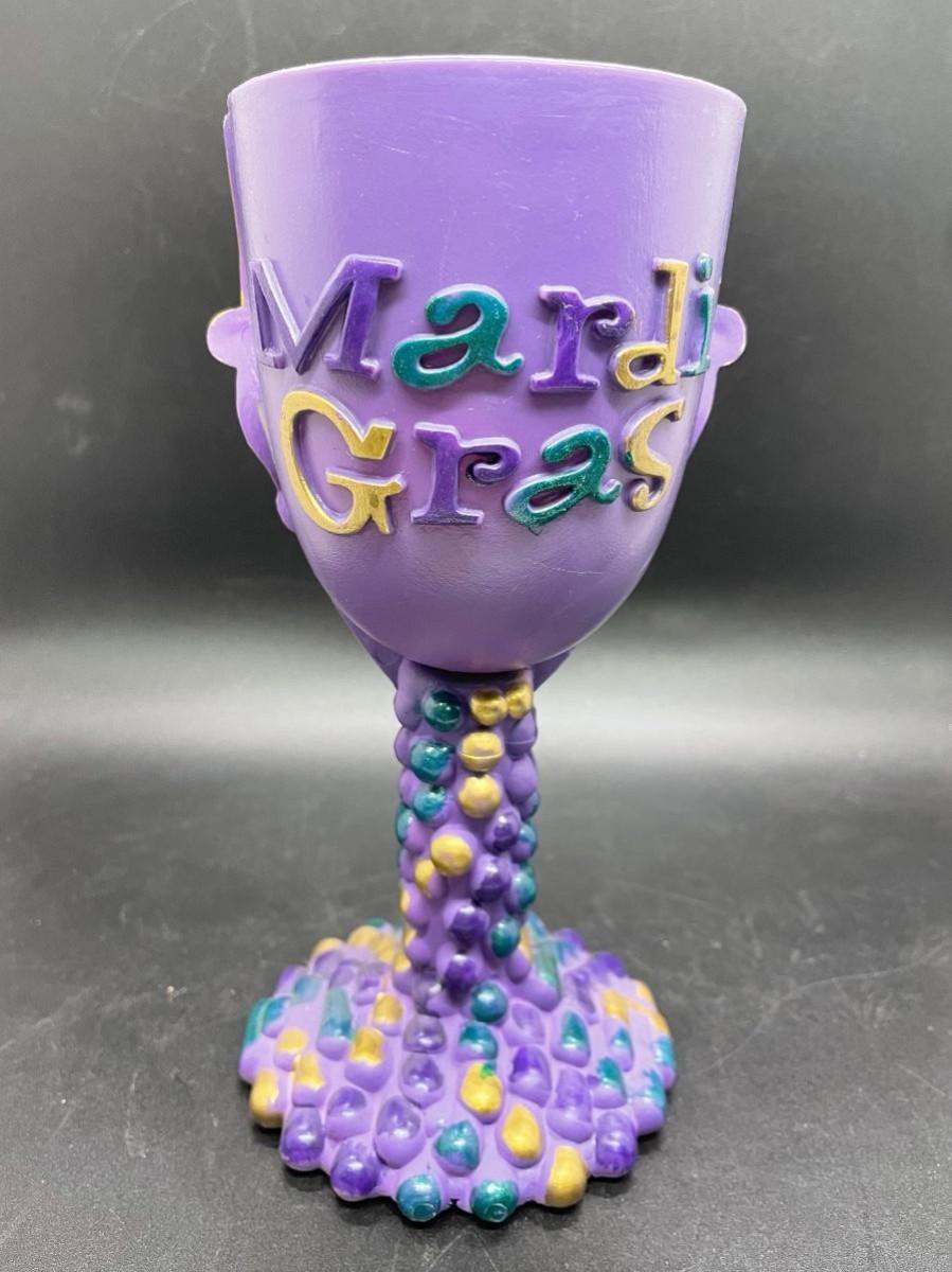 Item is in good condition, it had some discoloration here and there. The back of the chalice reads: “Mardi Gras.” The item is approximately 7” tall.