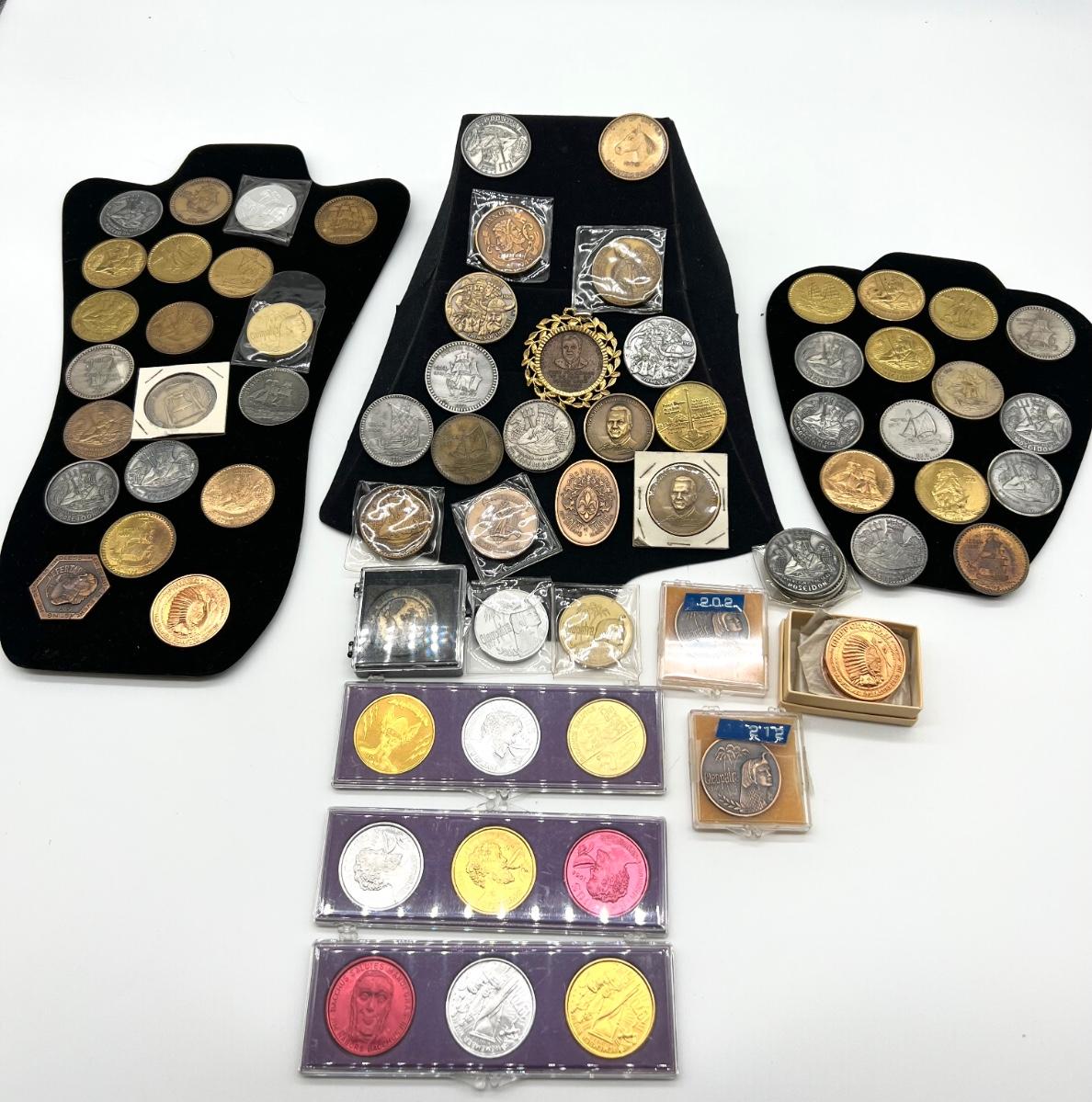 Not your average collection. Over 70 collectors coins These are copper, maybe silver collectors coins starting from the 60s.