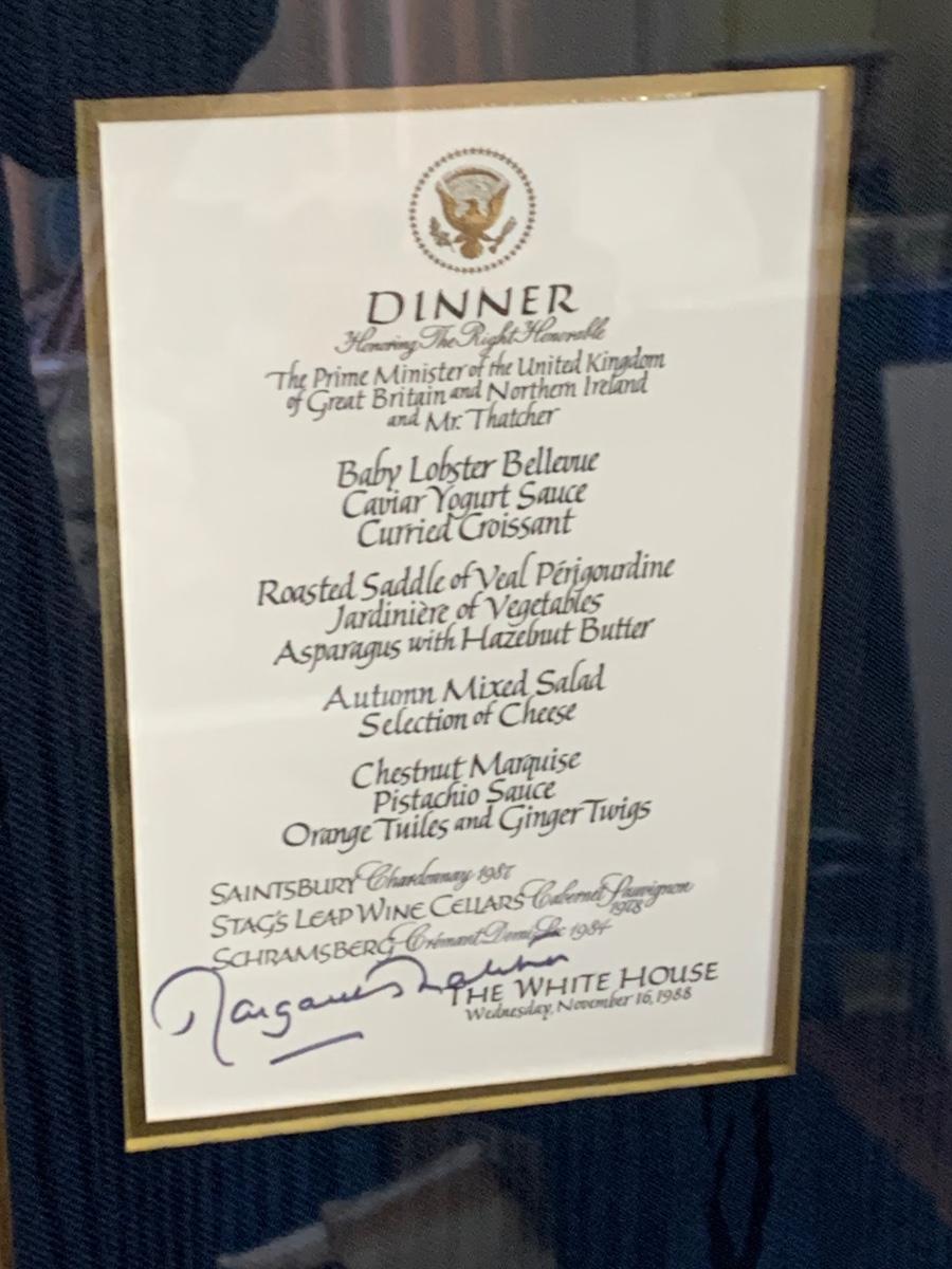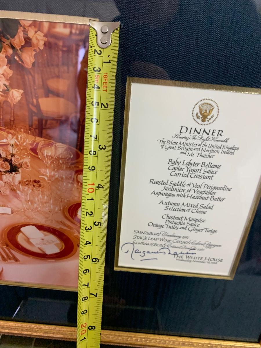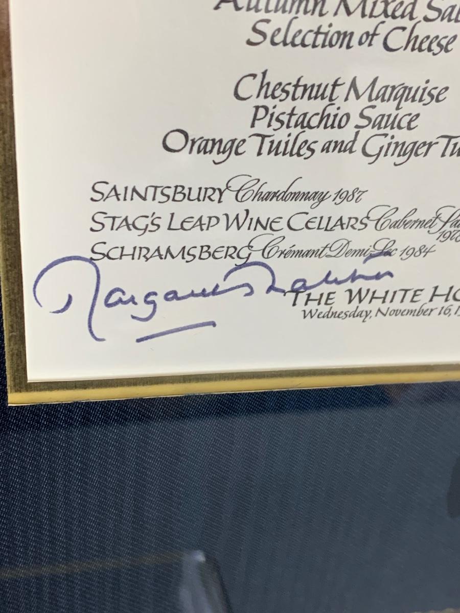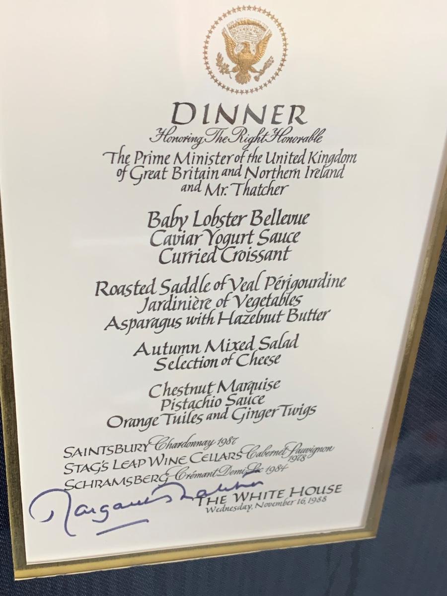 Margaret Thatcher Signed Matted Framed Photo & Dinner Menu