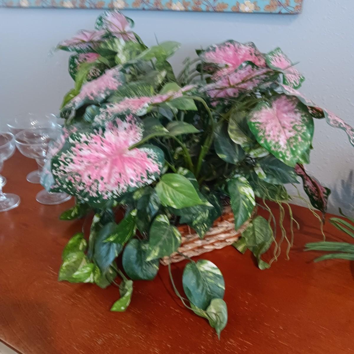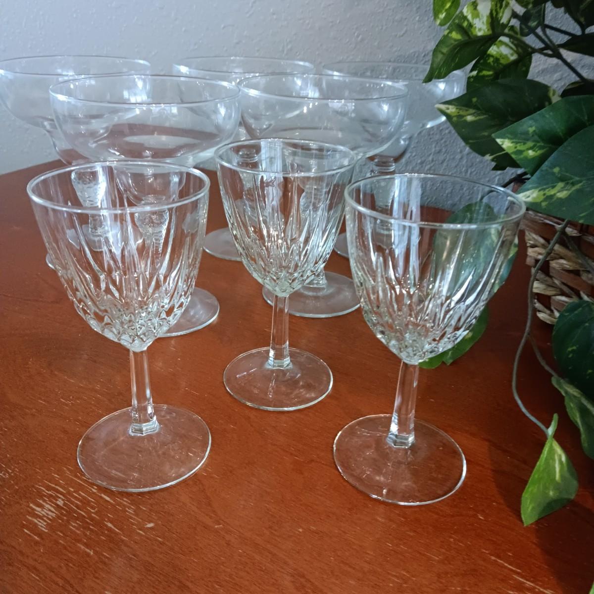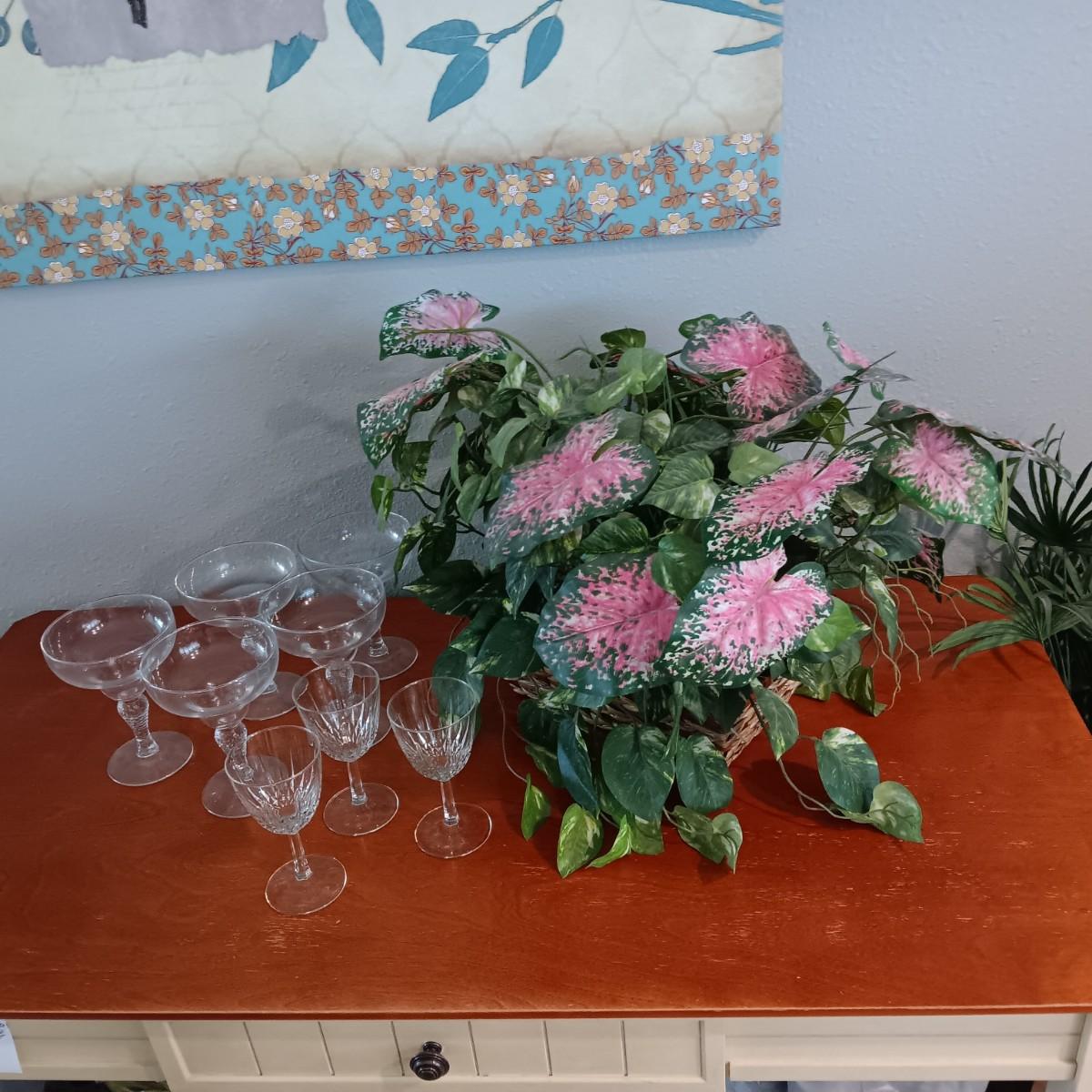 MARGARITA AND CRYSTAL STEMMED GLASSES PLUS FAUX PLANT