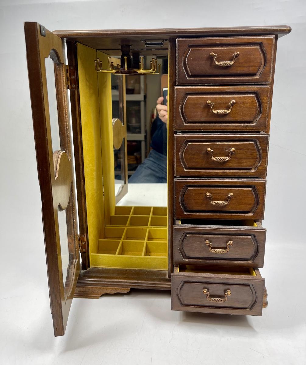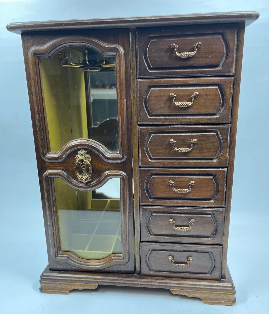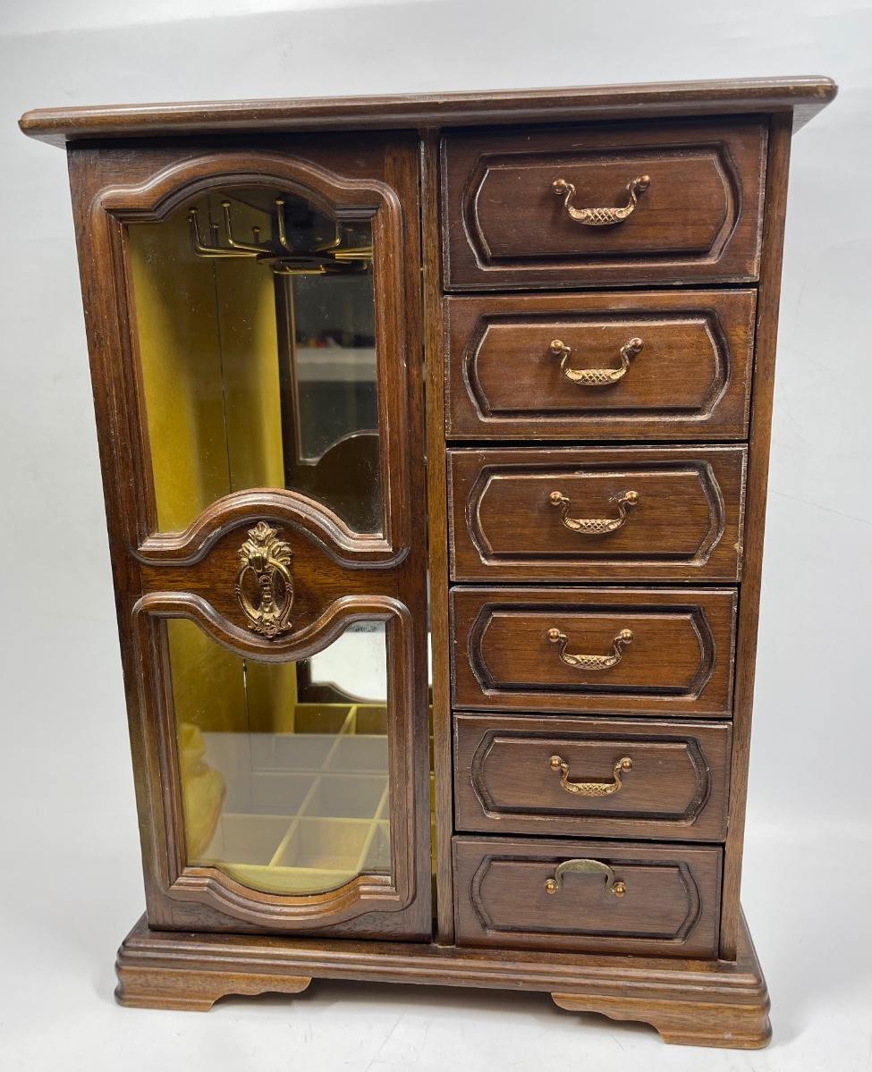 Large Wood Jewelry Armoire Cabinet with 6 Drawers and Glass Door