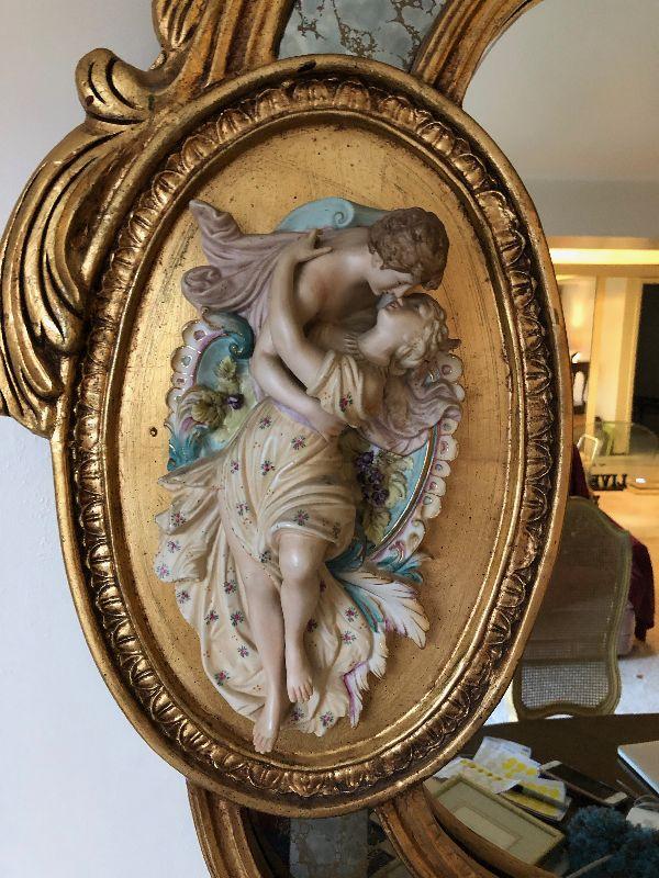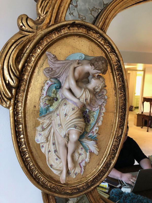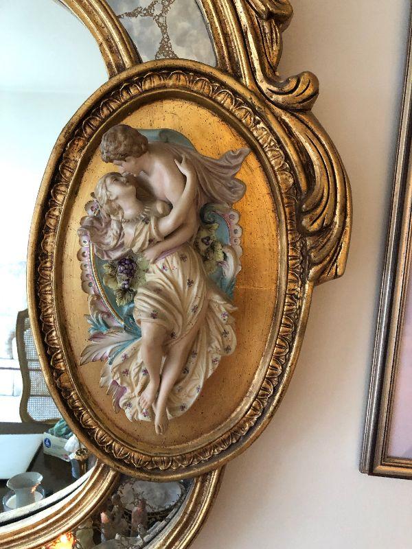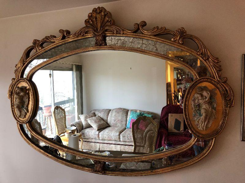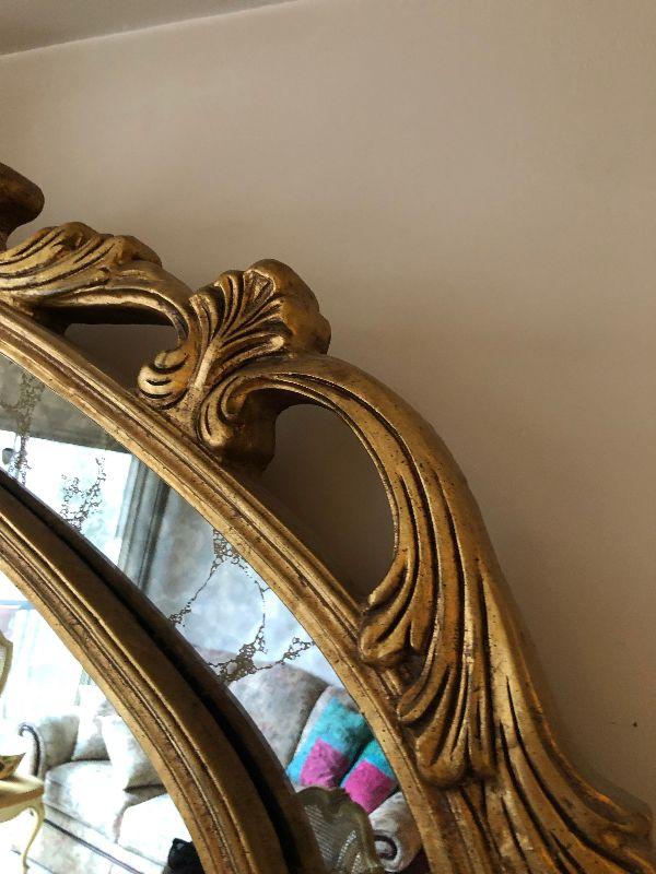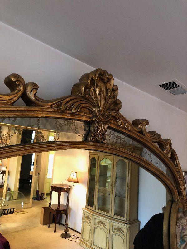 But really, what a mirror. We are calling it the statement piece of all statement pieces. Good news is that it can be yours TODAY! 80" Long 52" Tall. Renaissance Style? Louis 14th?