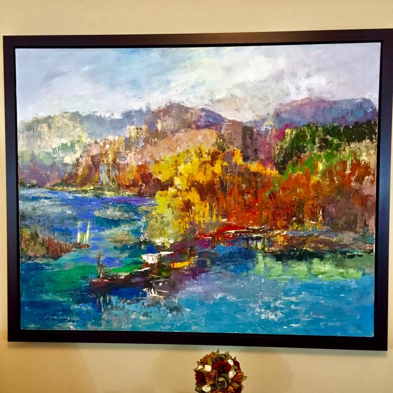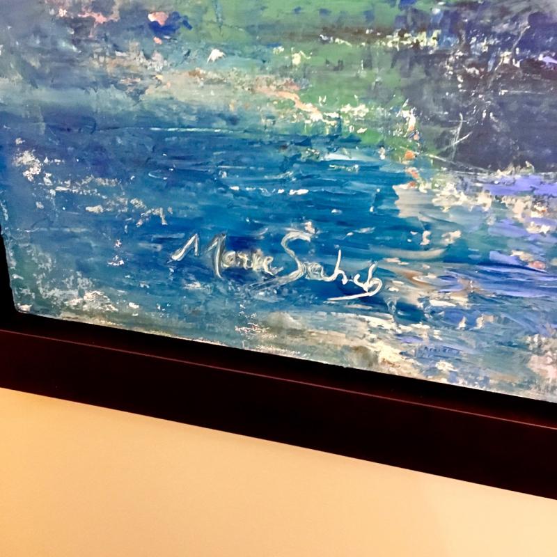 Title is Unknown an original oil on canvas, purchased in 2006 with a certificate of authenticity by the gallery Robert Senneville in Ouebec Canada for $2000. Marie Saheb paintings often reflect a world of peace and light. Though some seem to show a somber world, there is always space that shows hope; because everything has a meaning and value. Reminiscence of past traveling, impressions, imaginary landscapes and seascapes, whether inspired by nature, music, people, and past or present painters, are a reflection towards interiority. The external space nearly always turns into the inner space. Because painting is a way of expressing herself own and deepest feelings about life, its meanings and the people. She paints to be truthful to herself; She paints because of a strong inner desire to do so. ***DIMENSIONS: 52"x64" | CONDITION: Excellent*** Local pick up only, Newtown CT
