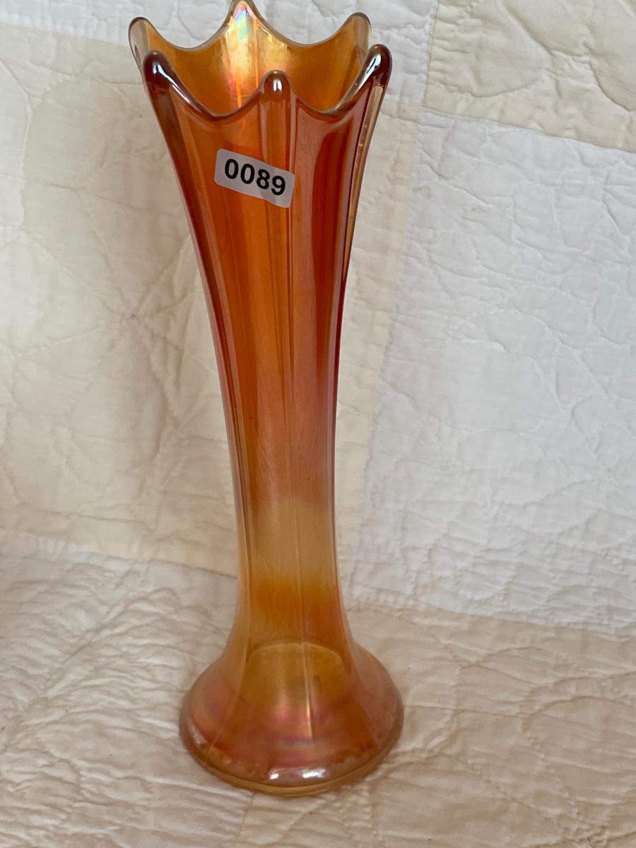 Marigold carnival glass swung vase