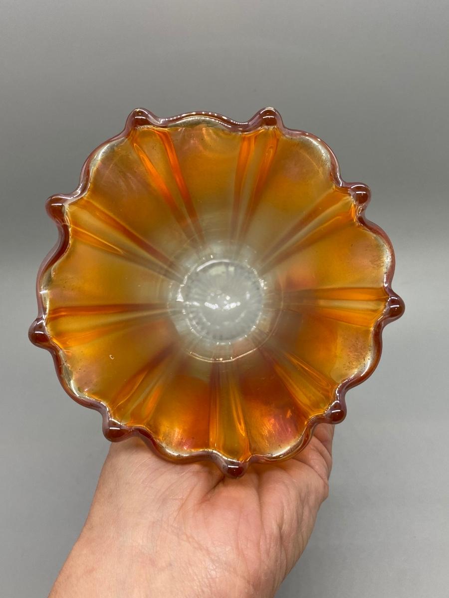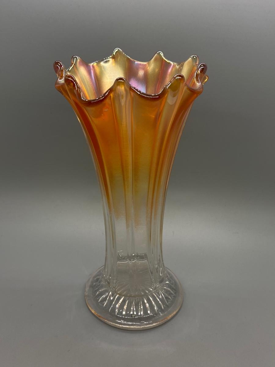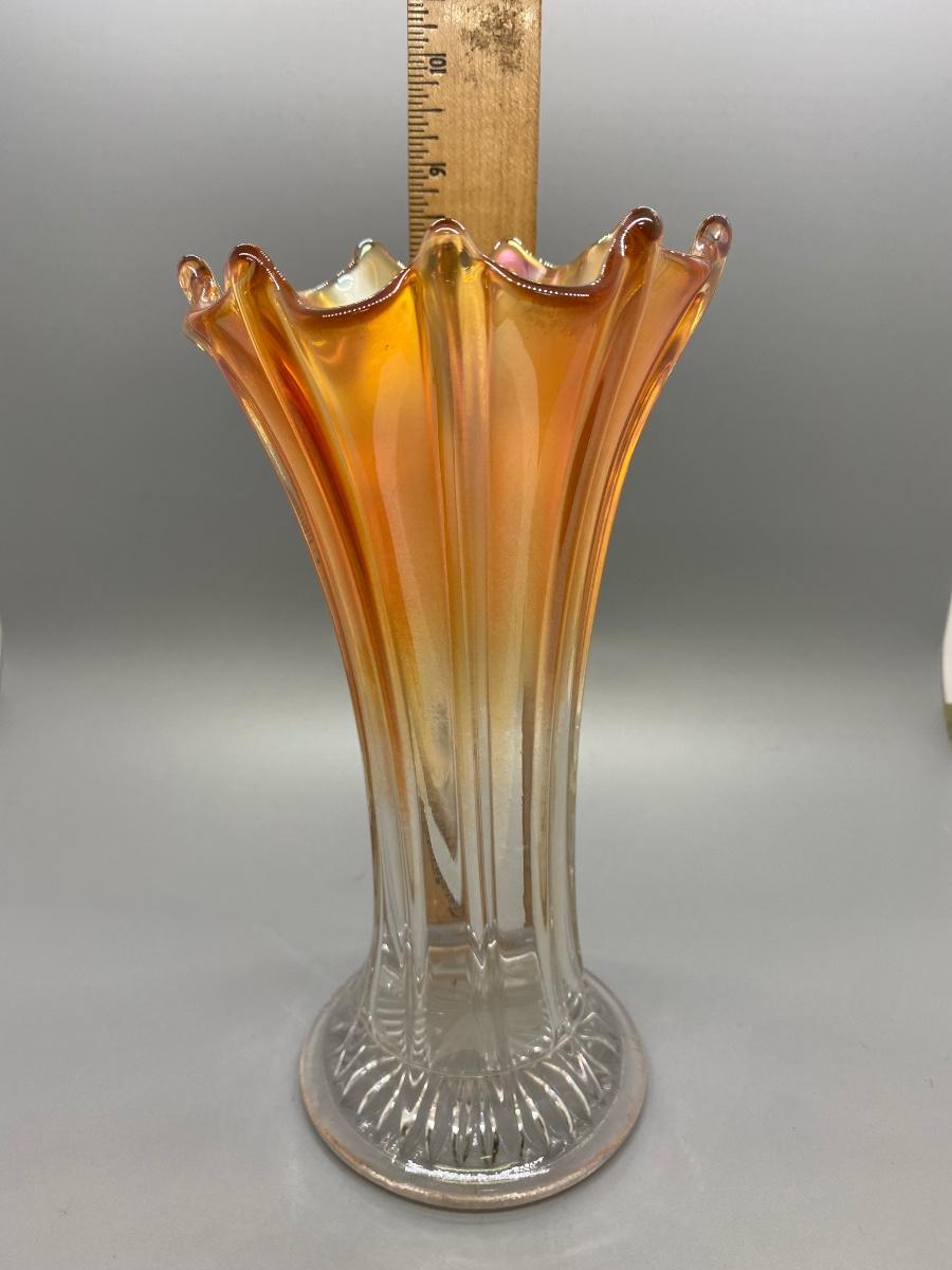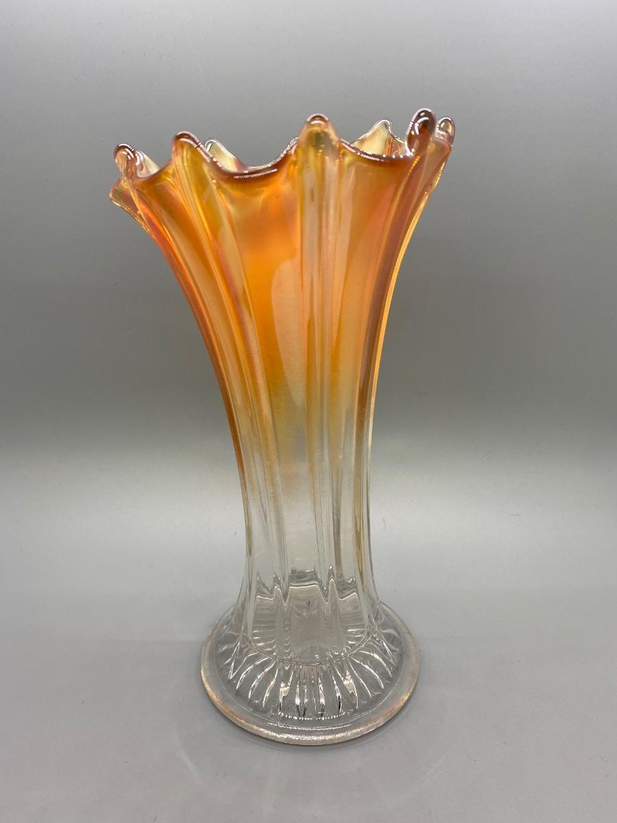 Marigold to Clear Carnival Glass Stretched Swung Vase