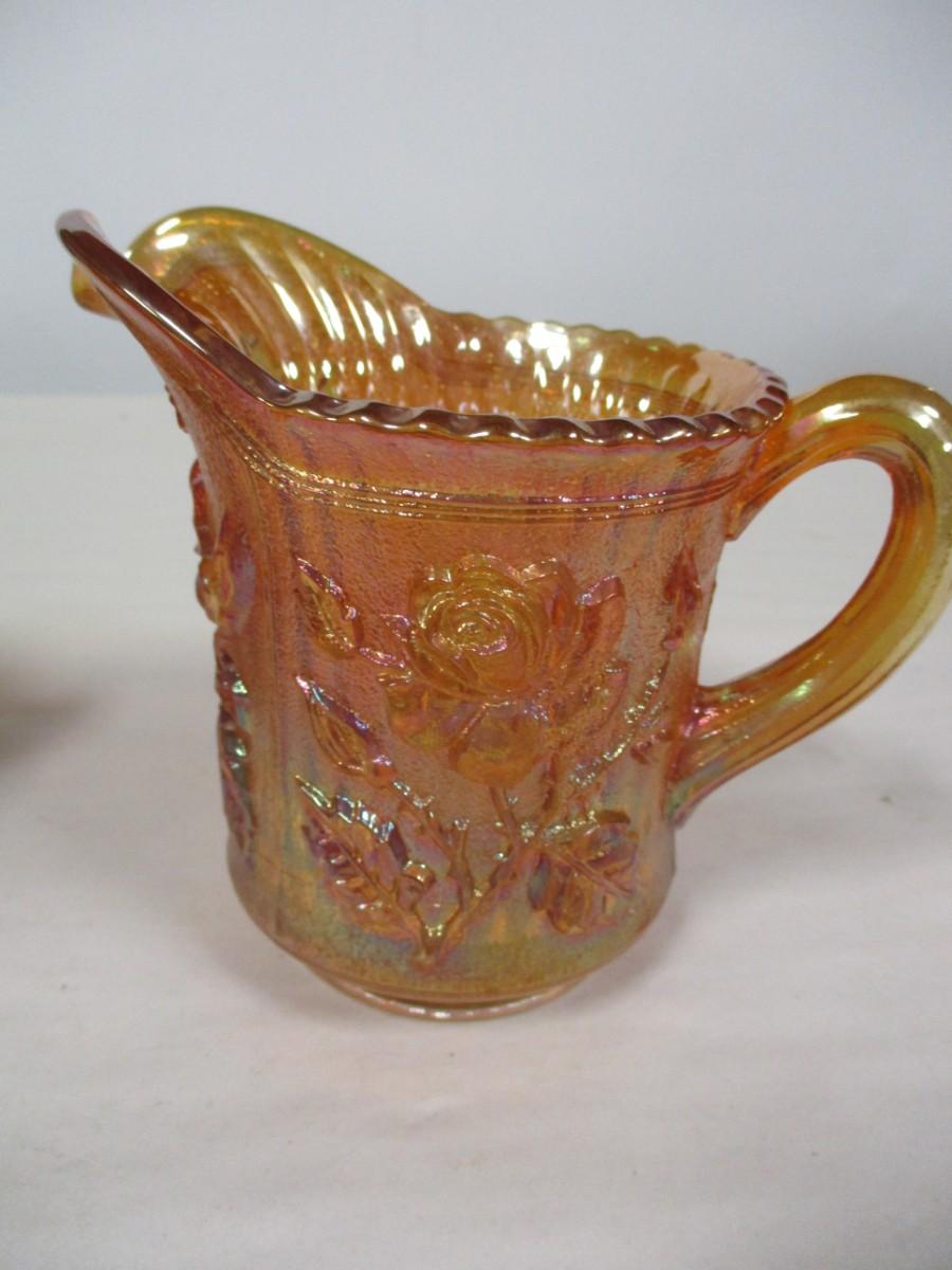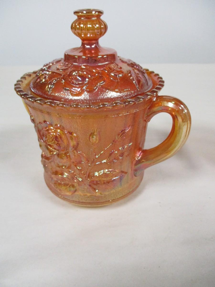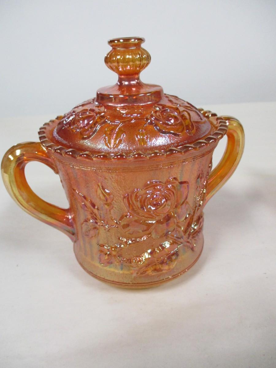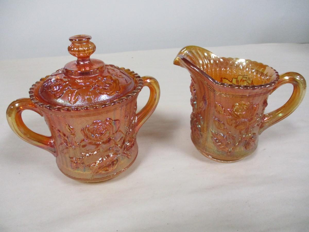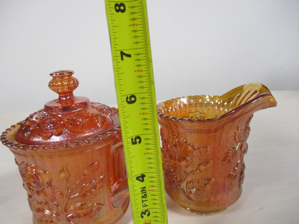Marigold Imperial Sugar Bowl With Lid & Creamer Pitcher Marked