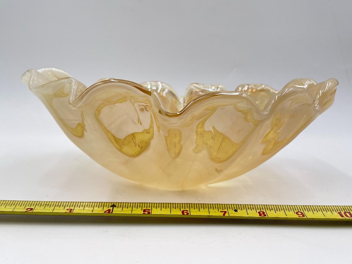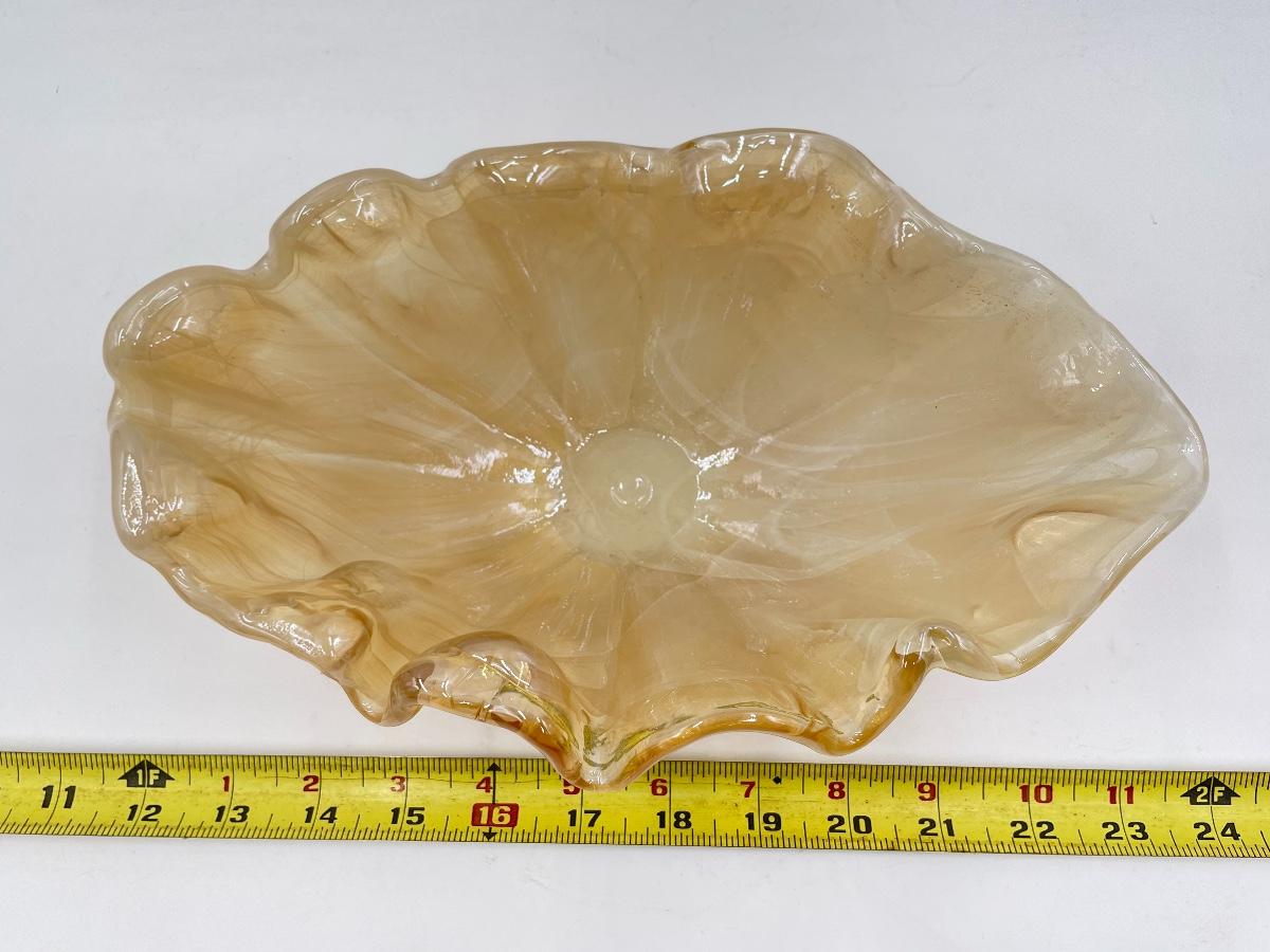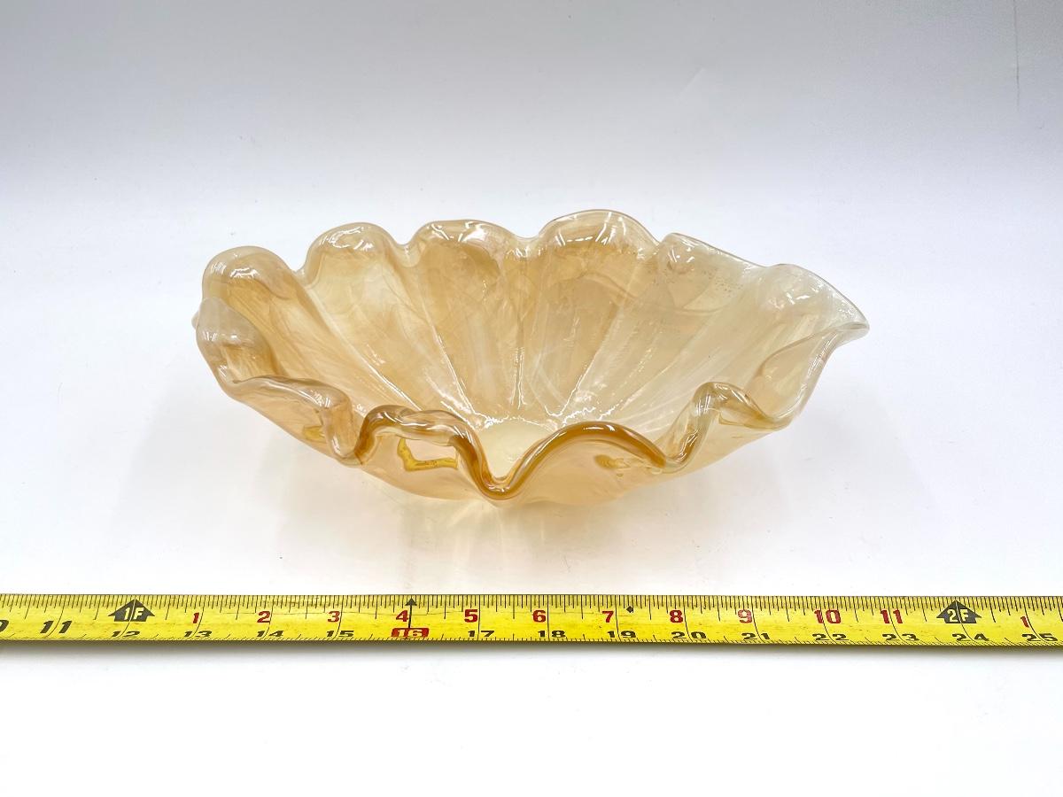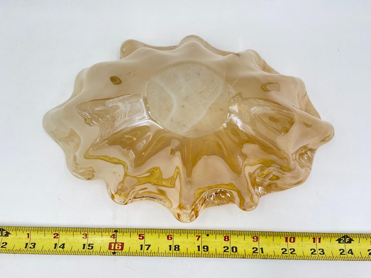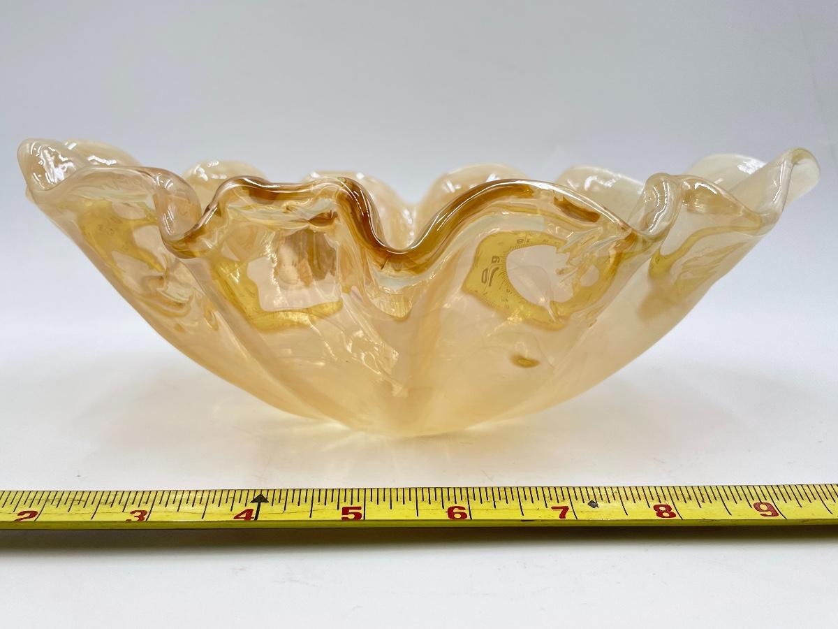 11" MARIGOLD/AMBER RUFFLED EDGE OVAL GLASS BOWL