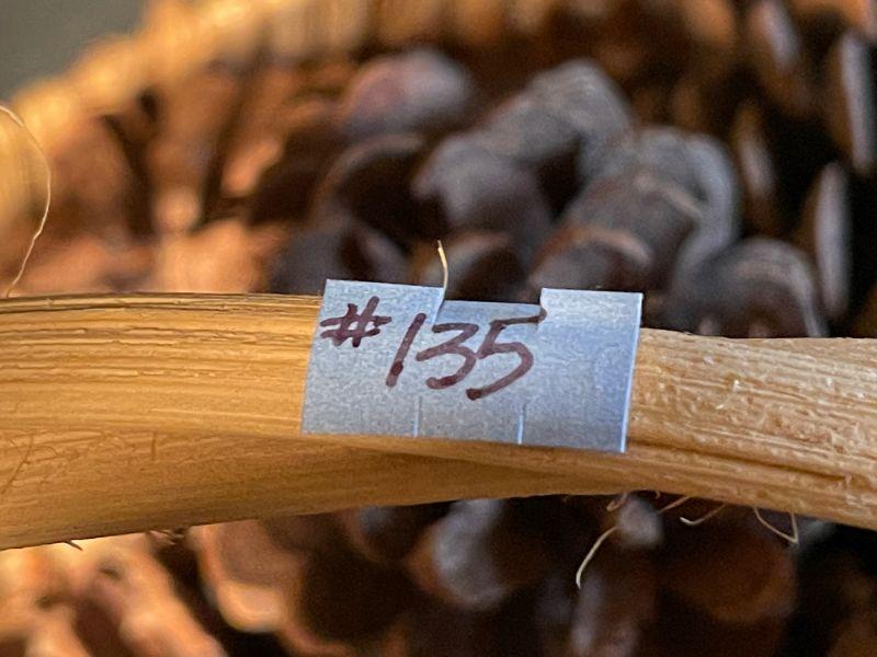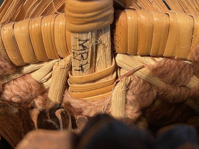 Split plant fiber, oak hoop foundtion, spun and twisted wool