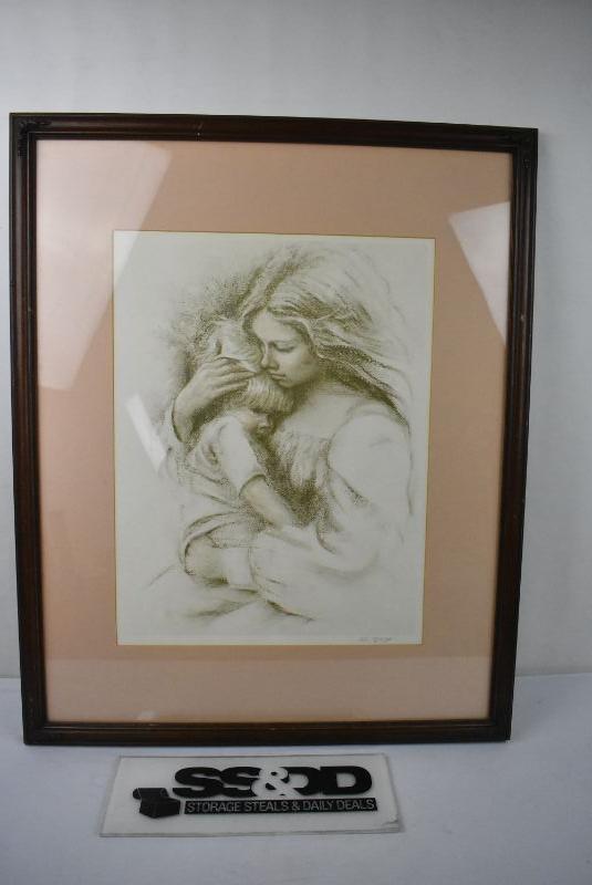 Marilyn Zapp "Mother & Child" Framed Print: 26" x 32", Maybe Signed in Pencil?