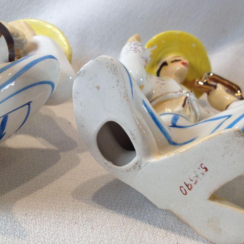 Here is a fun vintage set of tchotckes to make the sourest puss smile. Appears to be from the 50s and marked only with numbers on the bottom - see photo. Set these on your shelf and put on a Harry Belafonte album.