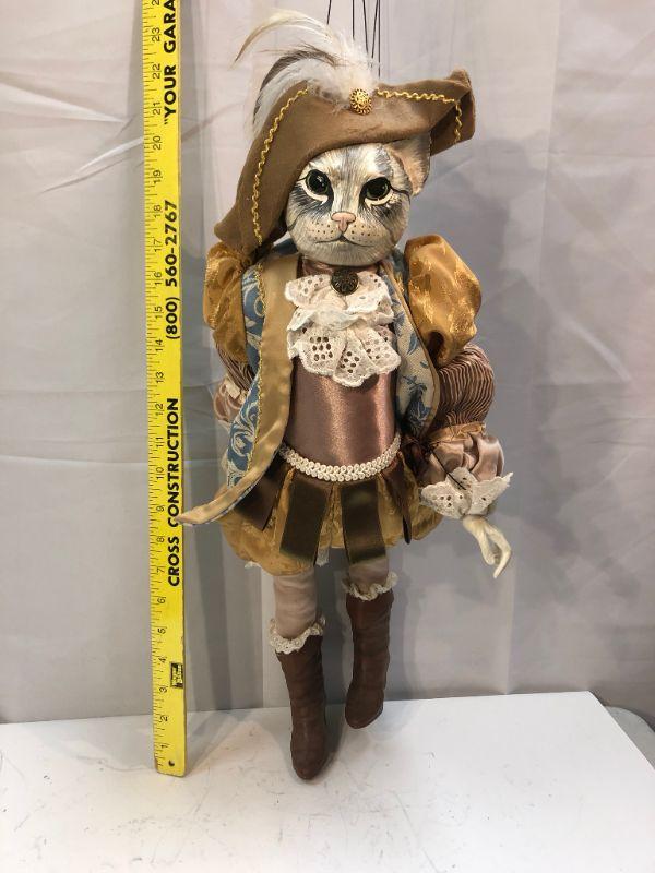 Venetian Renaissance Cat Marionette String Puppet Doll. Over 3' with strings. Good condition. #020-00097