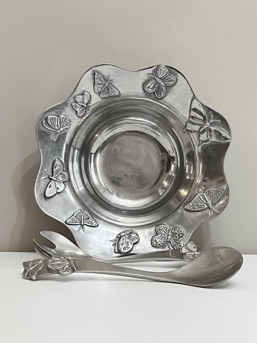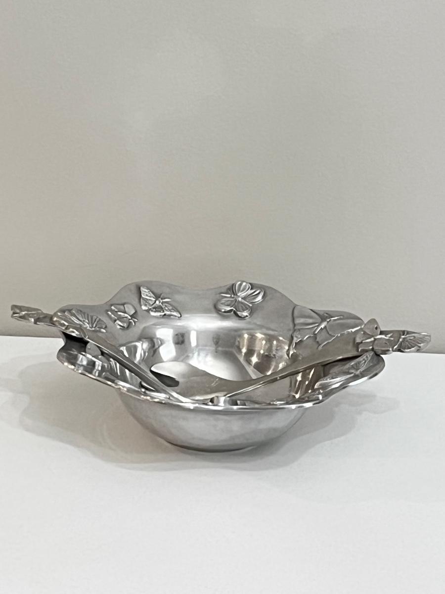 MARIPOSA ~ Brillante ~ Silver Aluminum Butterfly Salad Bowl With Matching Utensils
