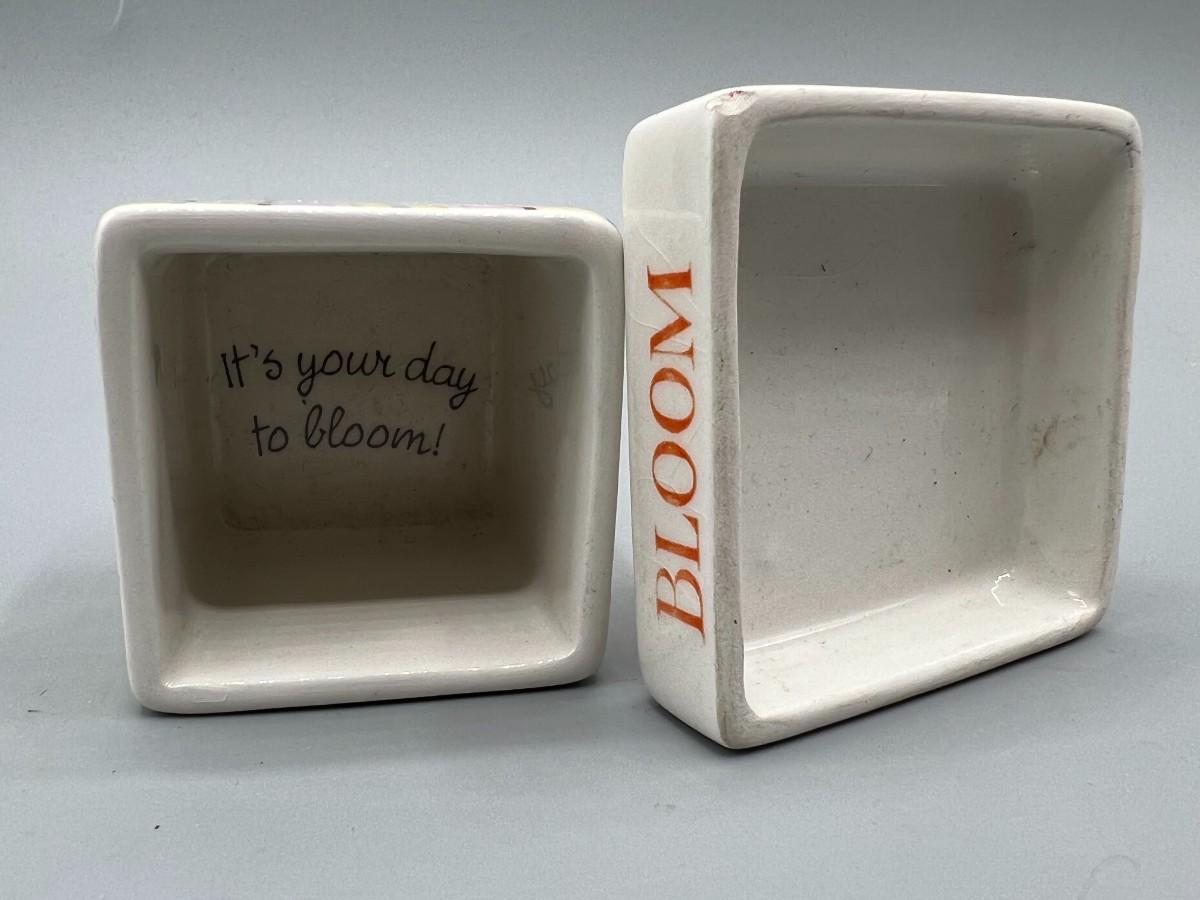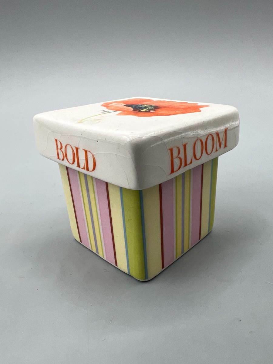 Marjolein Bastin Beautiful Bloom Ceramic Flower Trinket Box, there is some light wear to the box, but there is no signifncant damage and is in good displayable condition. Check pictures for more details and for sizing.