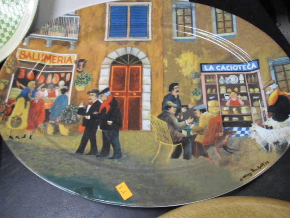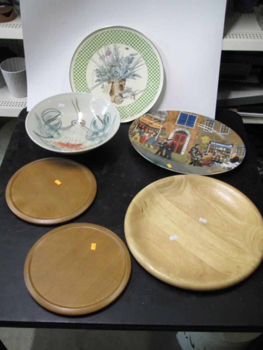 Marjolein Bastin Enamel Plate Signed Pat Reno Pottery Bowl Storefronts Porcelain Oval Serving Platter Guy Buffet & Wooden Trays