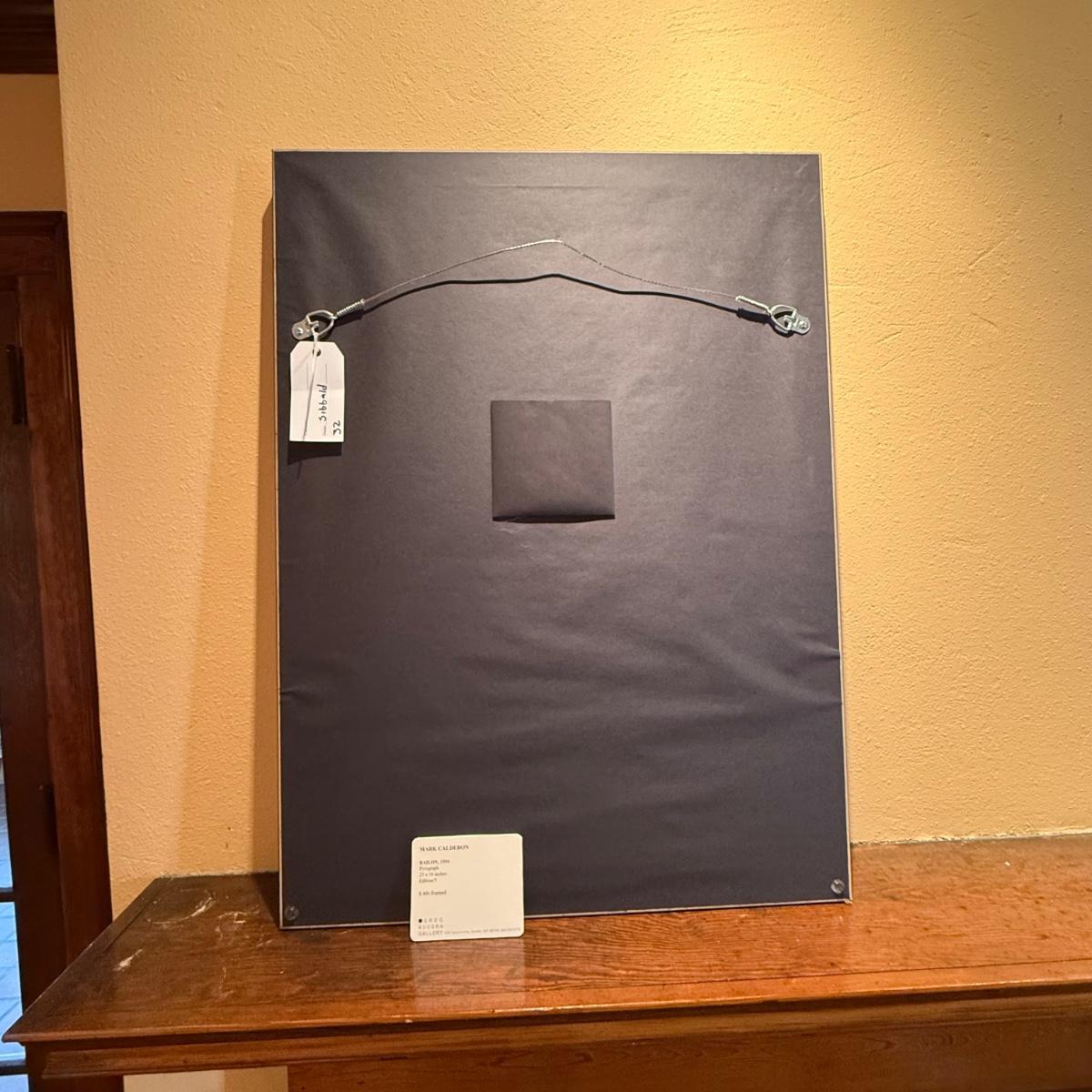 According to information found on the back, this is a Mark Calderon pyrograph print titled "Bailon" The framed piece measures 21.5” x 29”H. The frame appears to wood with a gold accent line and the art is behind glass. The art is penciled signed and numbered 1/5.