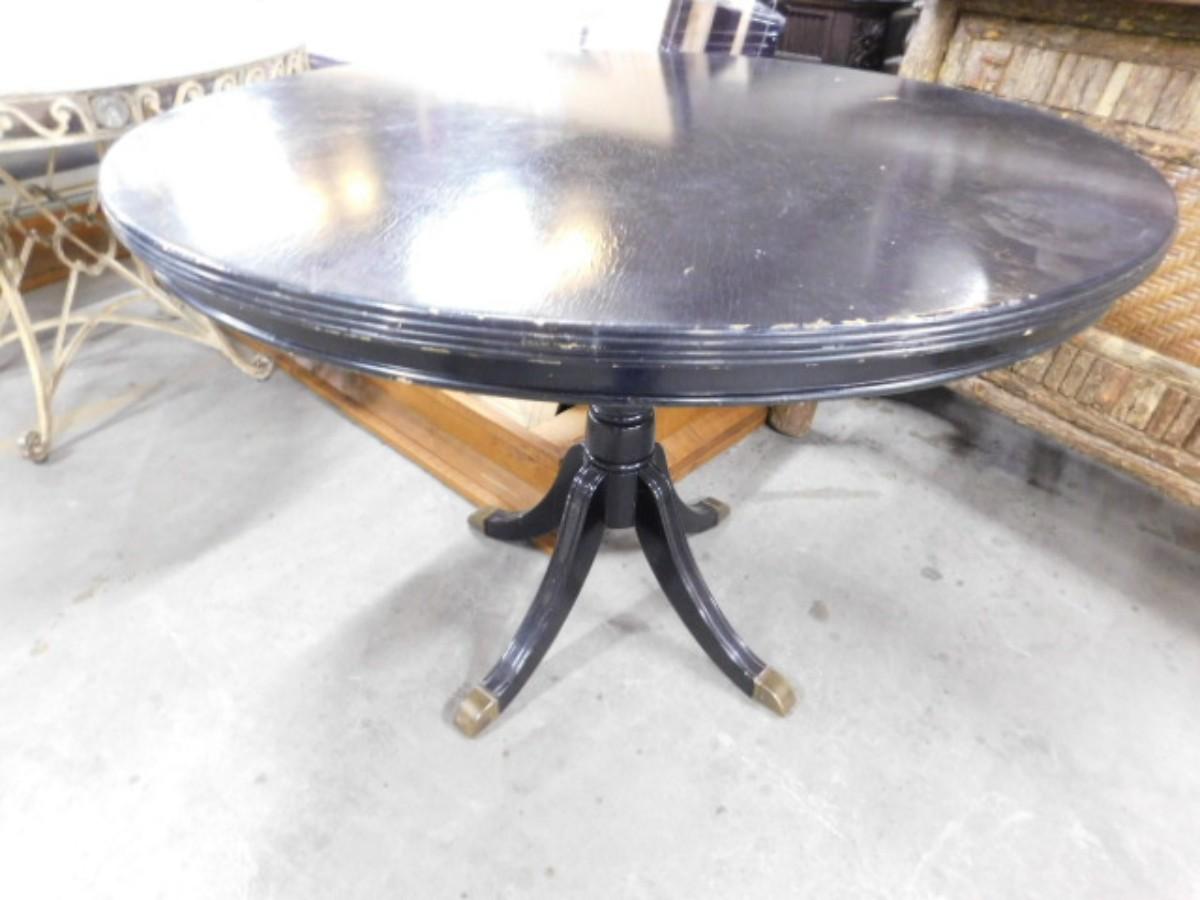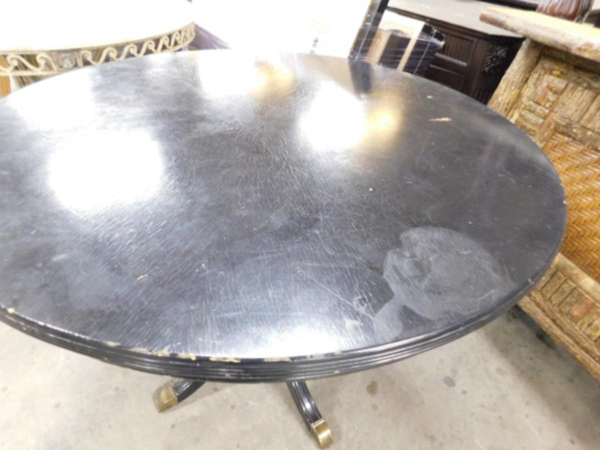 Mark David Black Lacquer Finish 42" Round Duncan Phyfe Design Table Choice B Has a stain on surface as shown.