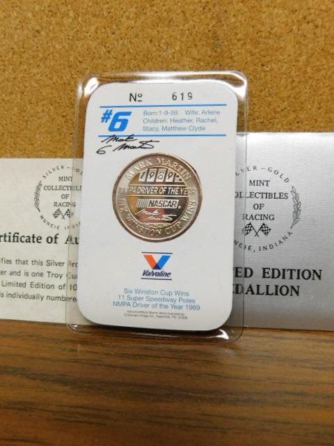 Mark Martin Mint Collectibles of Racing Limited Edition 1 oz. .999 Silver Medallion with COA