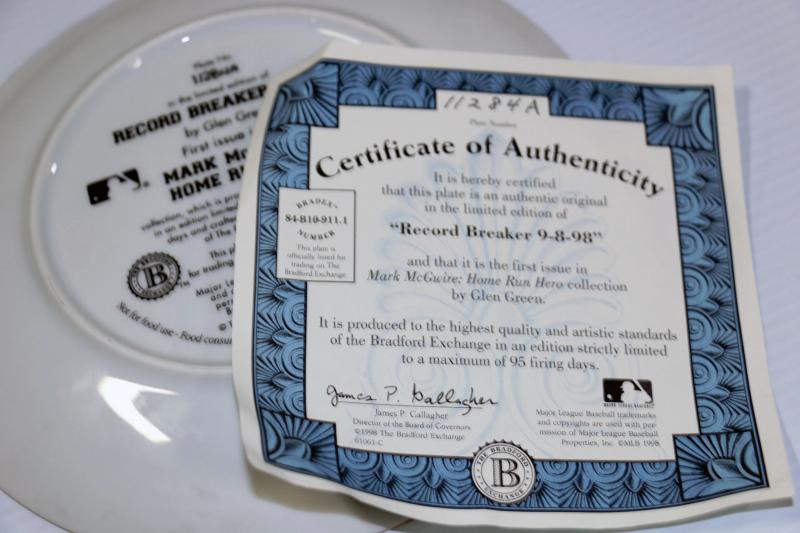 Mark McGWIRE Home Run Hero limited Edition Plate with COA #828-67