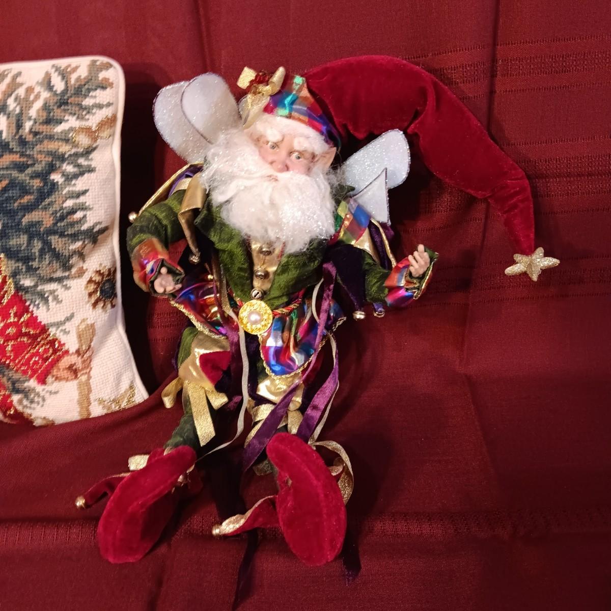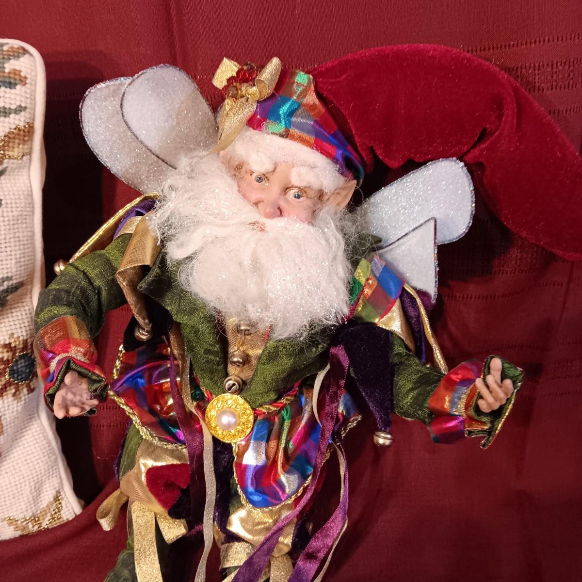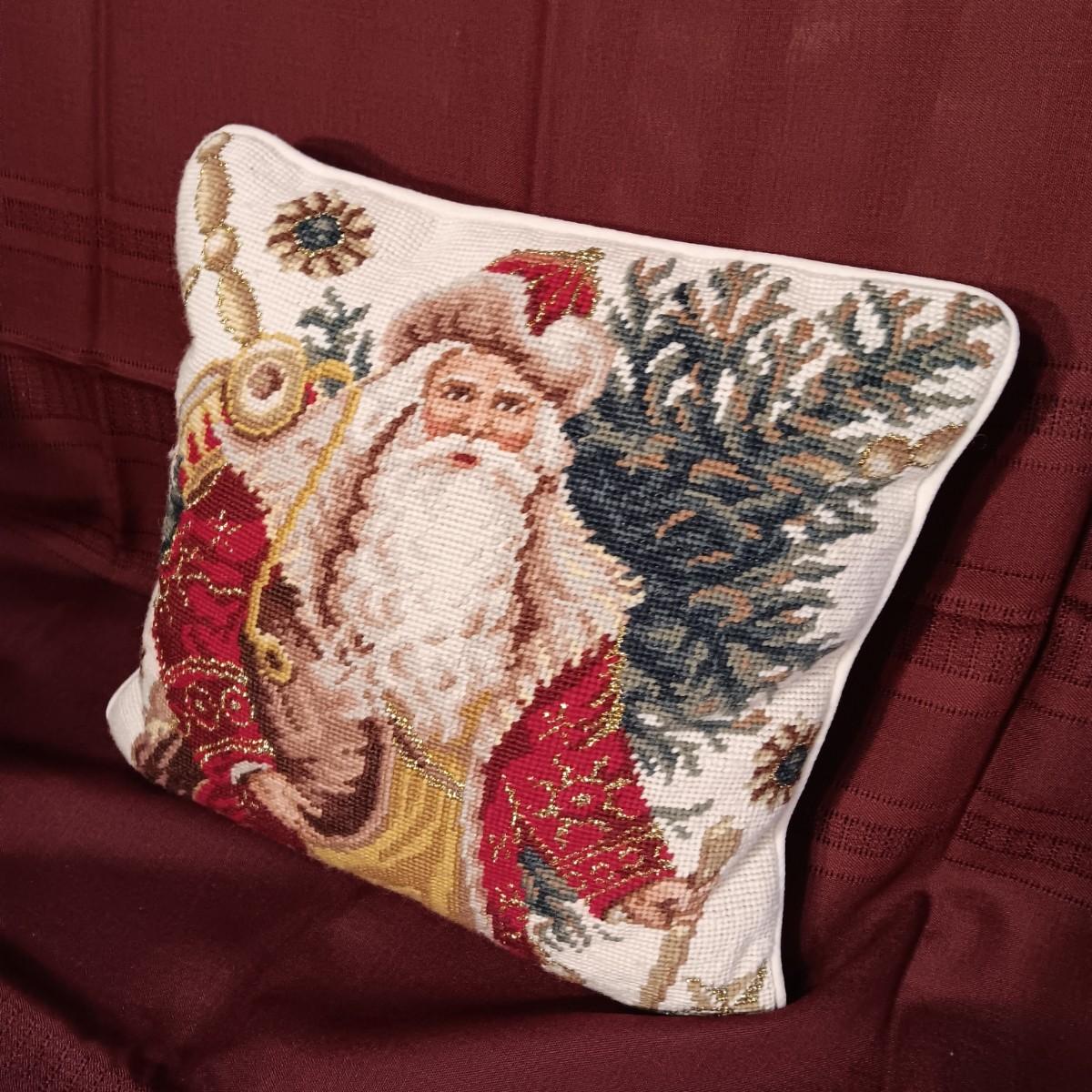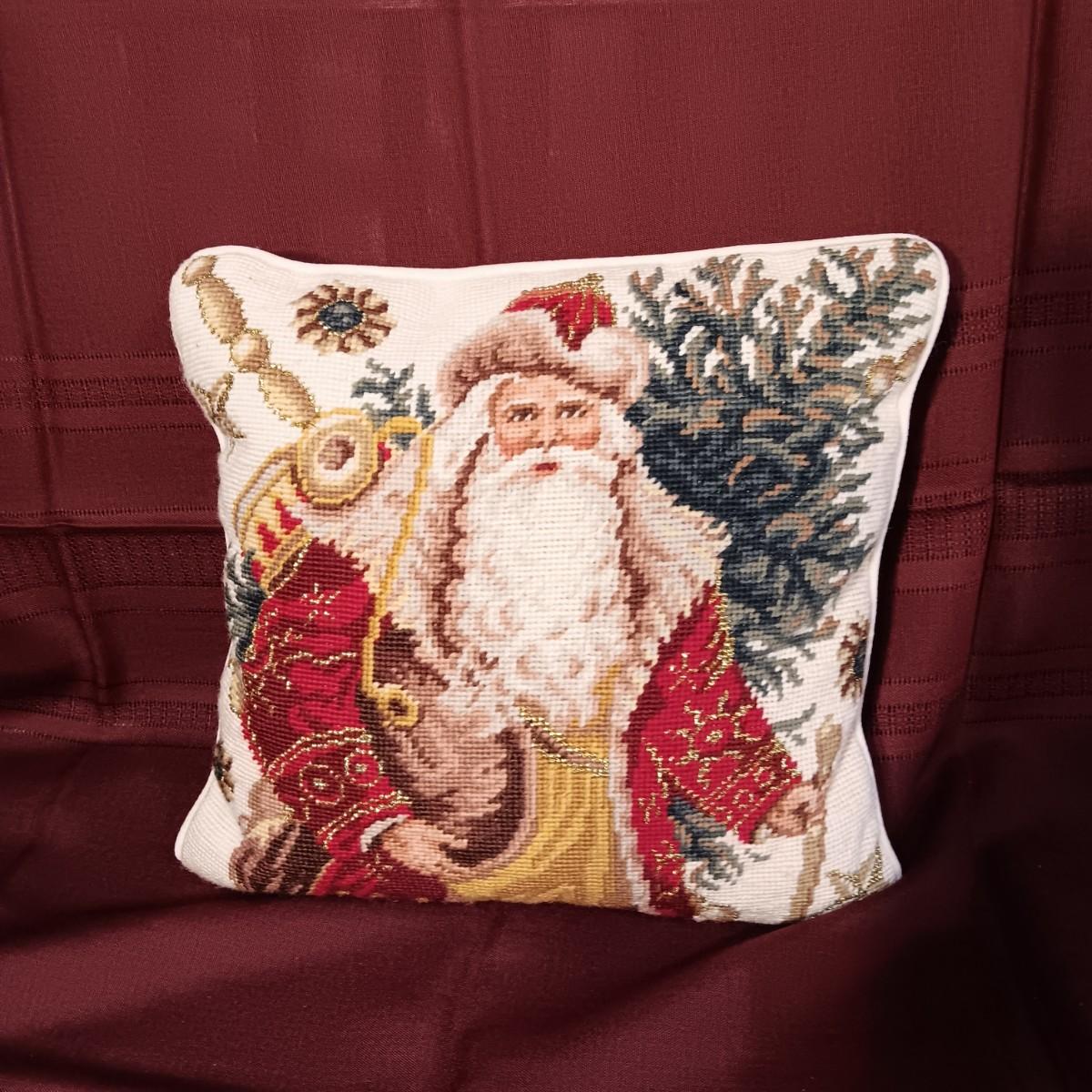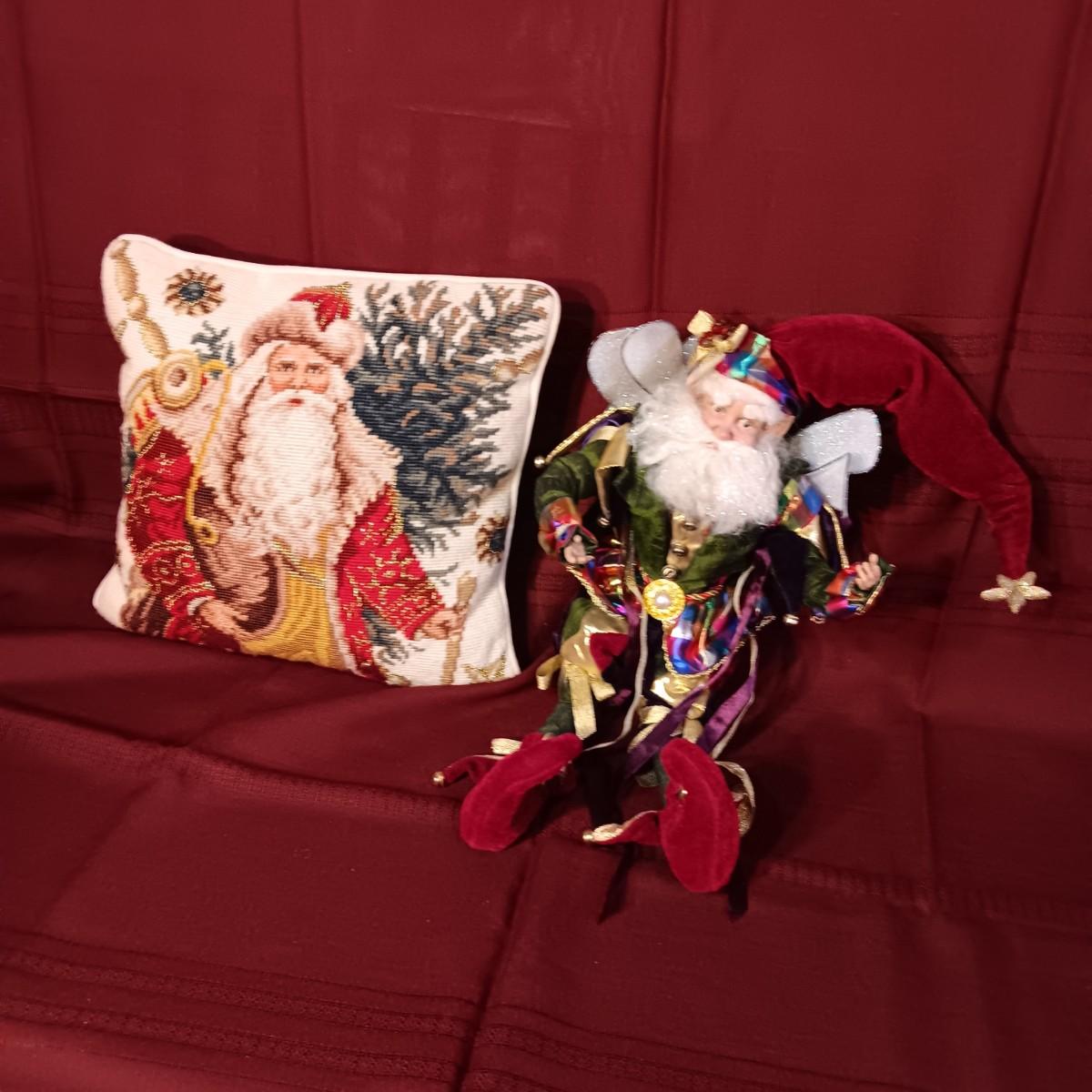 MARK ROBERTS FAIRY SANTA AND A NEEDLE POINT STYLE THROW PILLOW