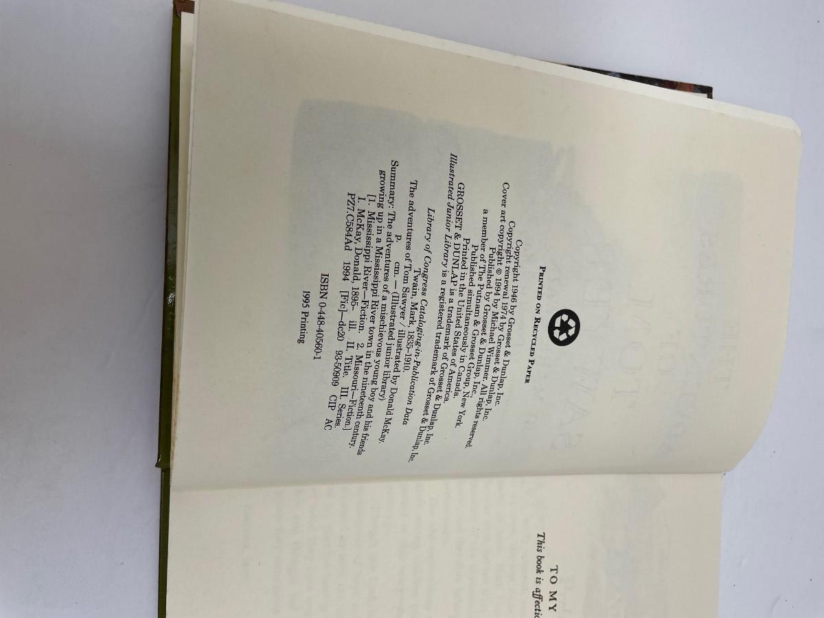 Description: Mark Twain The Adventure of Tom Sawyer. NY: Grosset & Dunlap 1995Measurement approximately: 9.5” H.Material: Paper.Condition: .Good.Note: .Illustrated by Donald Mckay., Hard Cover., 318 PP.