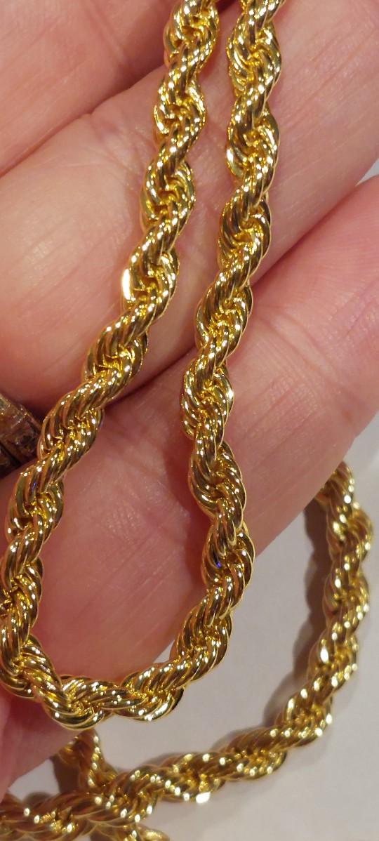 Marked 14K Yellow Gold Rope Chain Necklace (6 mm, 36 inch)