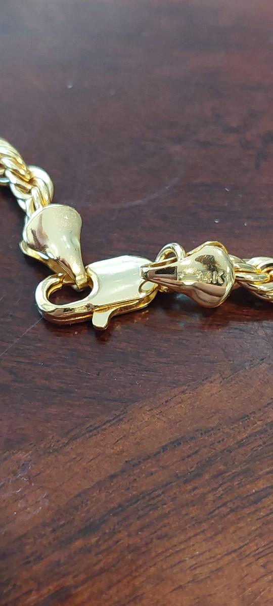 This Marked 14K Yellow Gold Rope Chain Necklace by Jewelry Atelier is a fine jewelry piece with a lobster closure. The necklace features a rope pattern design in a stunning yellow color and has a length of 30 inches.