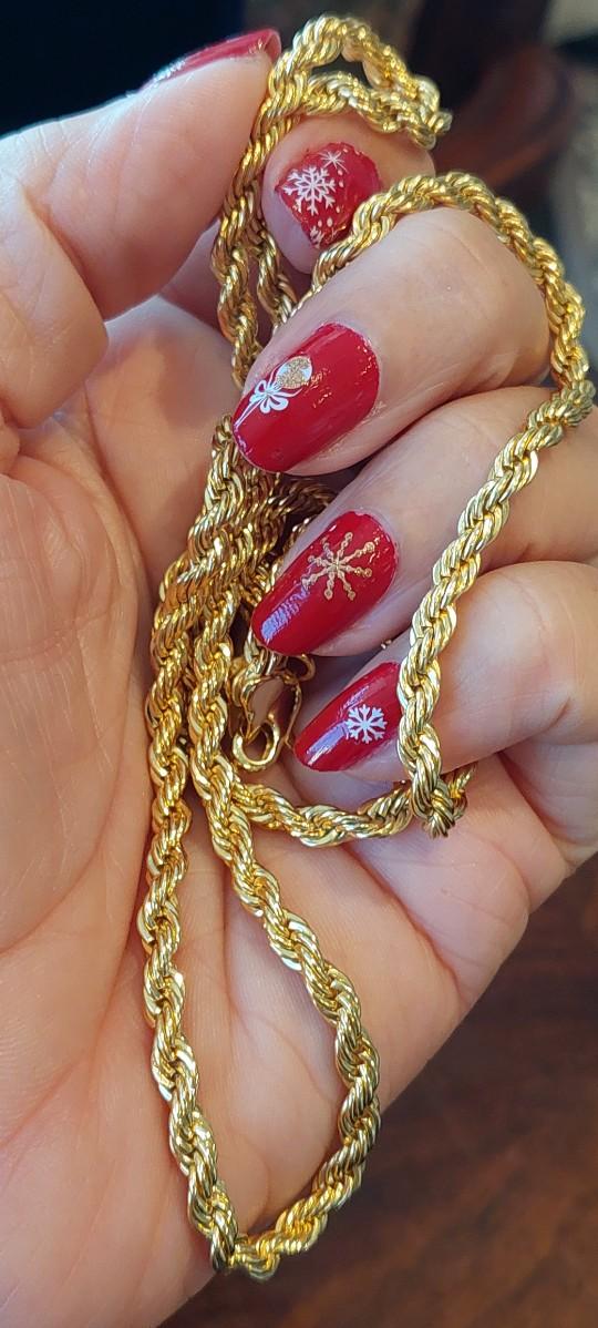 Marked 14K Yellow Gold Rope Chain Necklace 30"