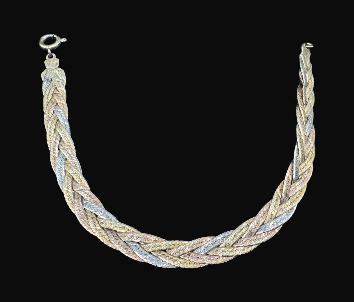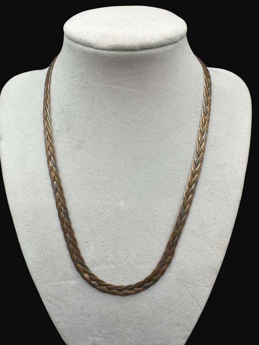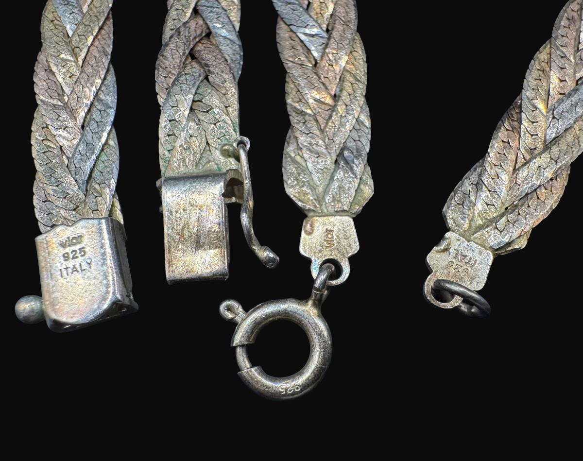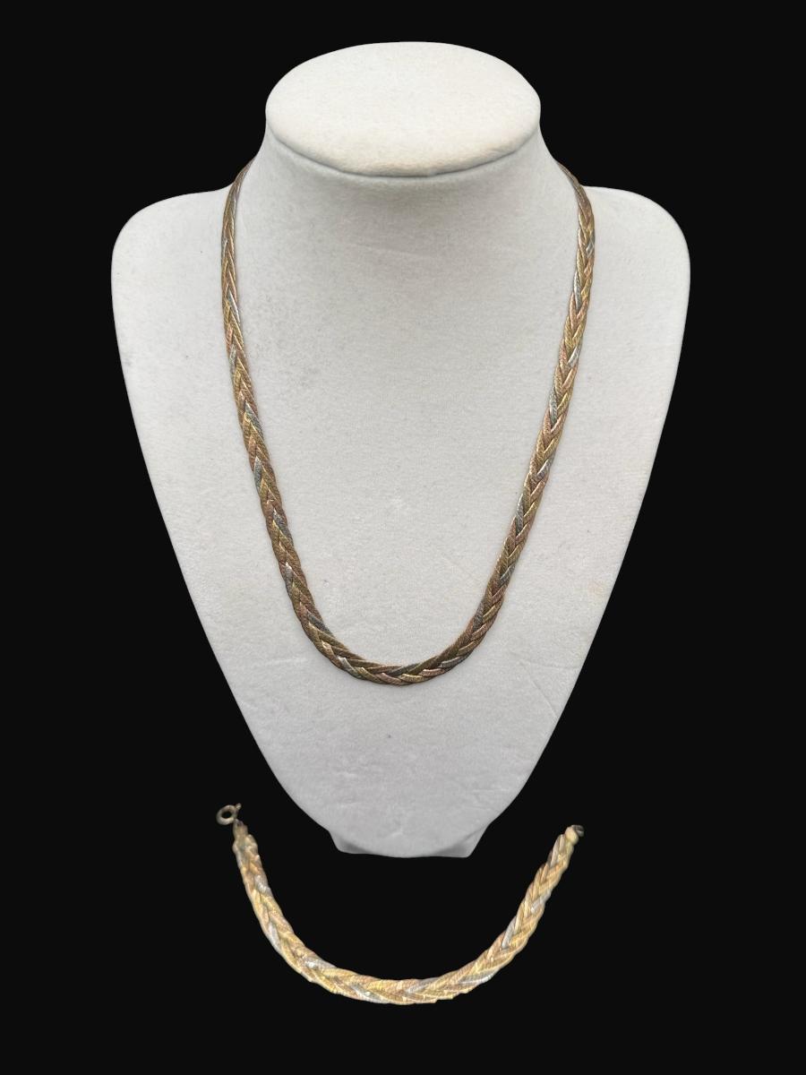 **WIRE TRANSFER IS REQUIRED IF SHIPPED.** [23.16g] This ensemble features a bi-color herringbone style necklace with matching bracelet. Marked “925, Italy.” The necklace is 18"L, and the bracelet is 6.5"L. **ALL PRECIOUS METALS SALES ARE FINAL. NO REFUNDS WILL BE GIVEN FOR ANY REASON.** [KB]