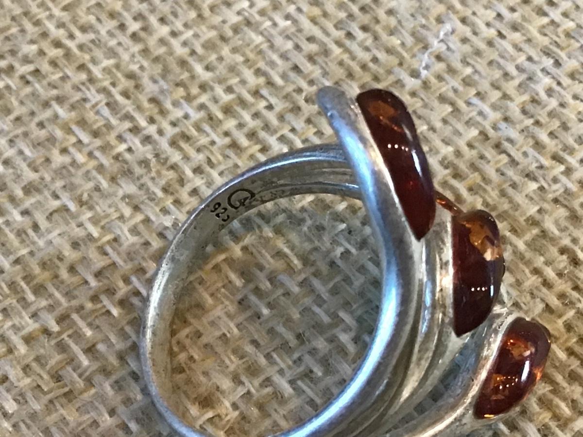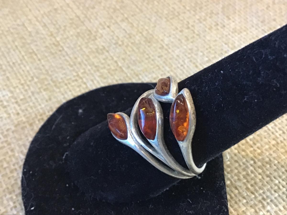 Marked 925 Silver Amber Ring