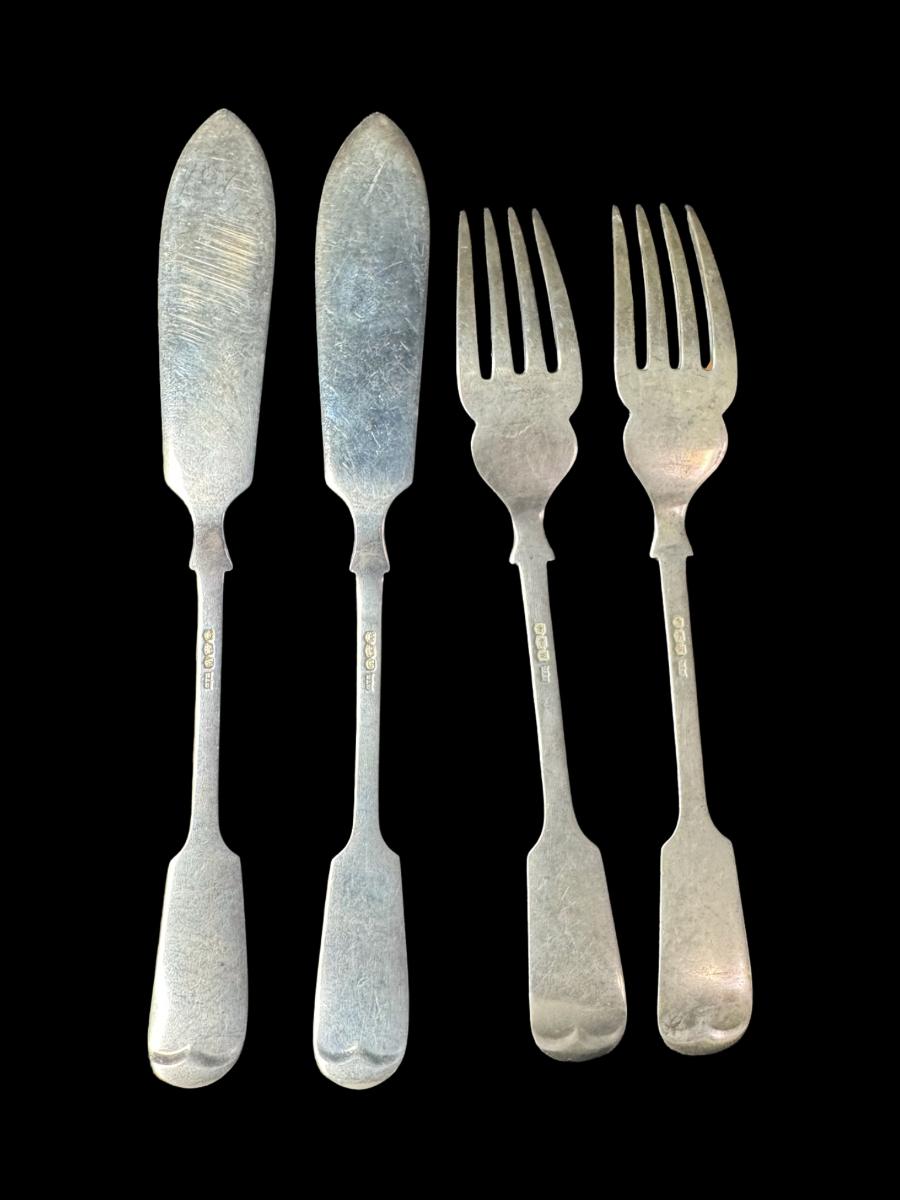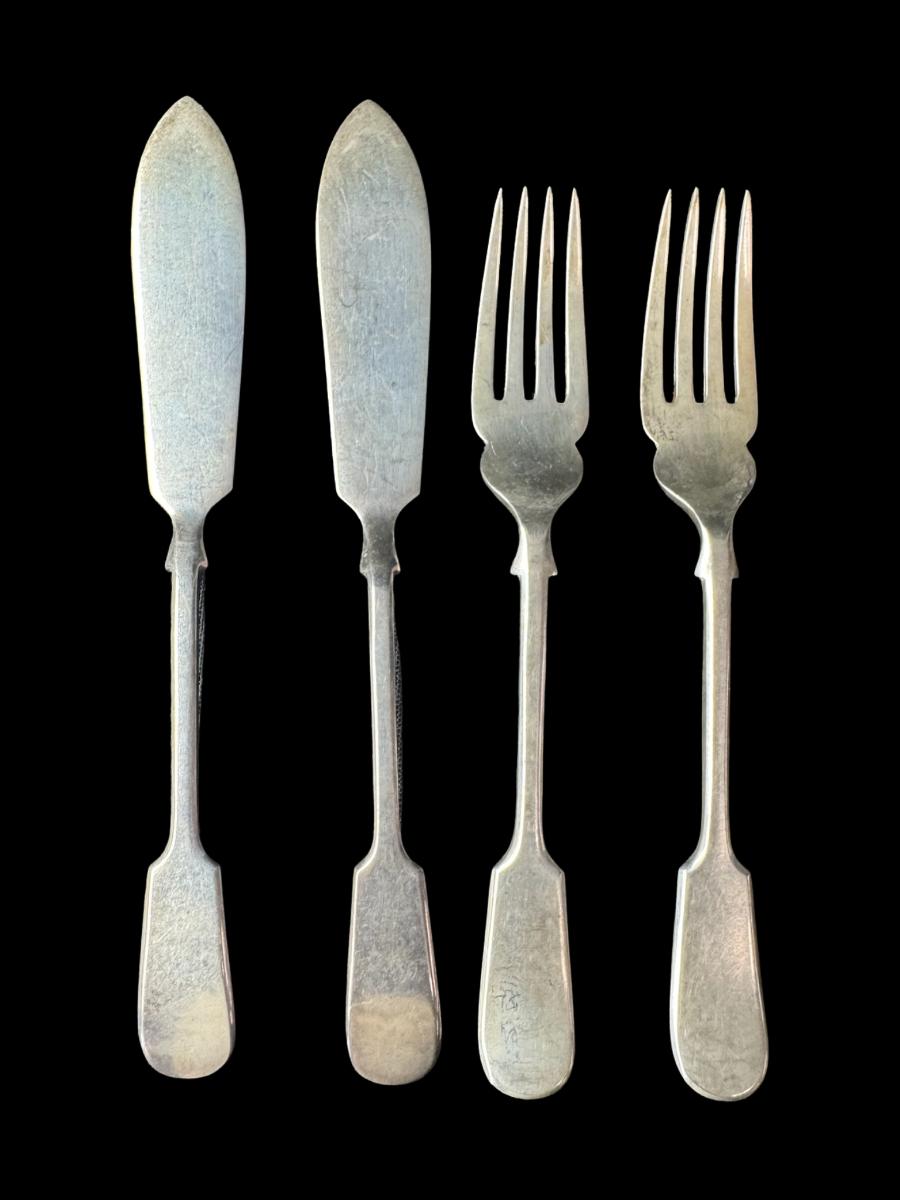 **WIRE TRANSFER IS REQUIRED IF SHIPPED.** [203g] Includes four pieces of Mappin & Webb 1939 forks and knives. These were also tested to confirm silver content, using the Niton XRF precious metals analyzer. Pre-auction estimate: $300-$400. **ALL PRECIOUS METALS SALES ARE FINAL. NO REFUNDS WILL BE GIVEN FOR ANY REASON.** [JL]