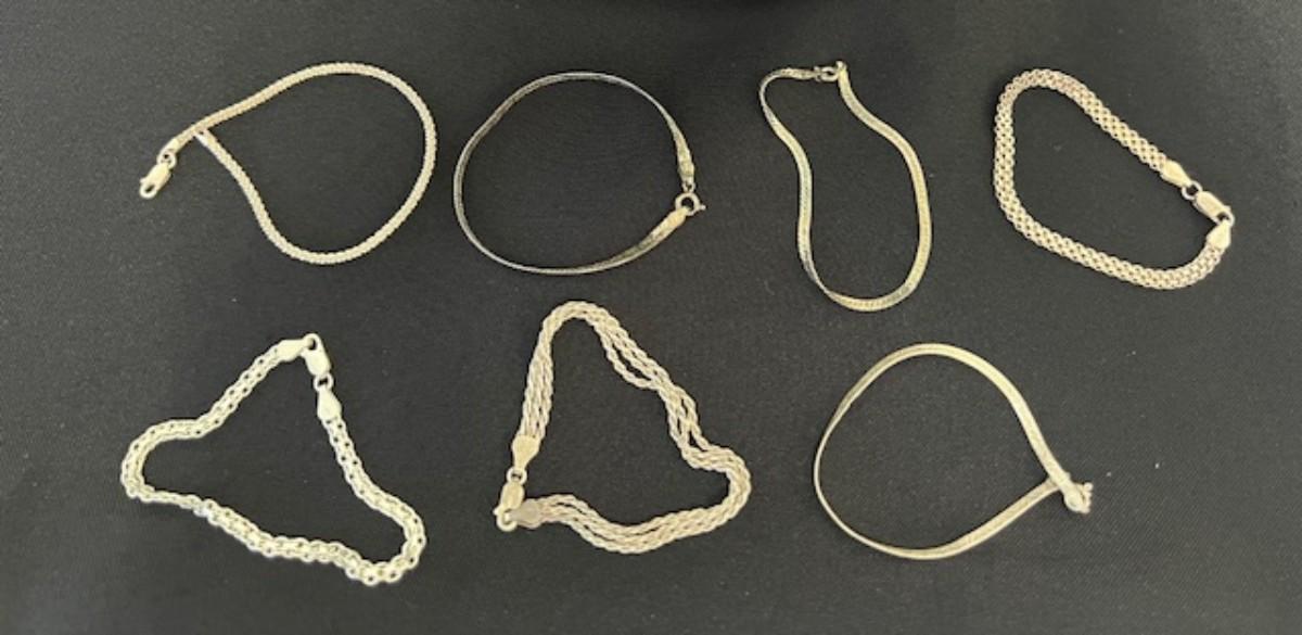 **WIRE TRANSFER IS REQUIRED IF SHIPPED.** [58.7g] Includes a choker, a necklace, and seven bracelets. Silver content confirmed using Niton XRF precious metals analyzer. [ST]