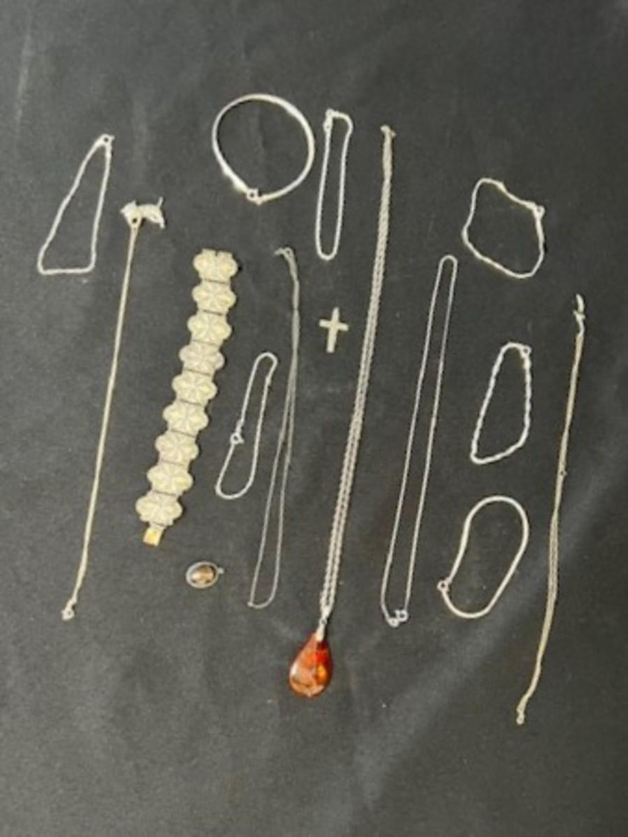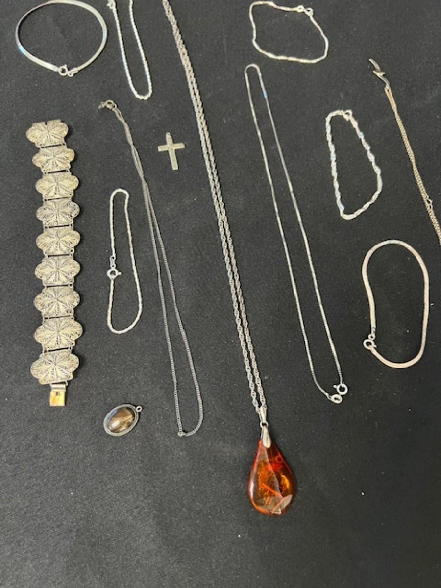**WIRE TRANSFER IS REQUIRED IF SHIPPED.** [50.86g] Includes necklaces, bracelets, and pendants. Total of 15 pieces. Silver content confirmed using Niton XRF precious metals analyzer. **ALL SALES ARE FINAL ON PRECIOUS METALS. NO REFUNDS GIVEN FOR ANY REASON.** [BS]