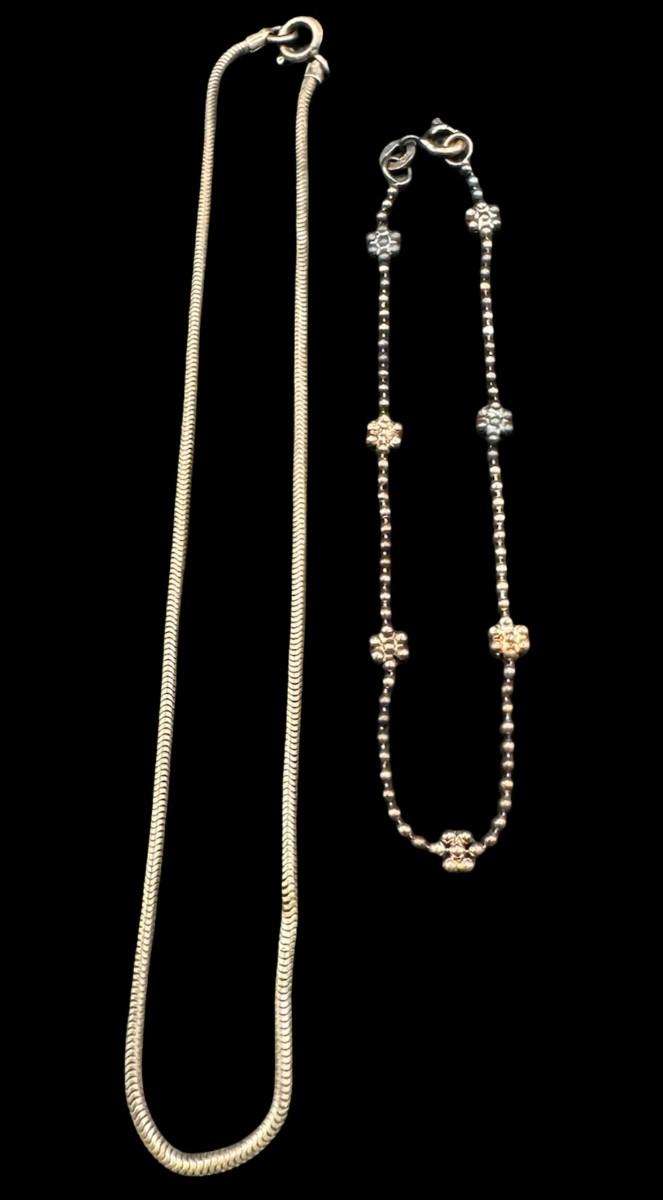 [6.07g] Includes a bead bracelet, and a snake chain. Measurement of longest: 10”L. Silver content confirmed using Niton XRF precious metals analyzer. [BK]