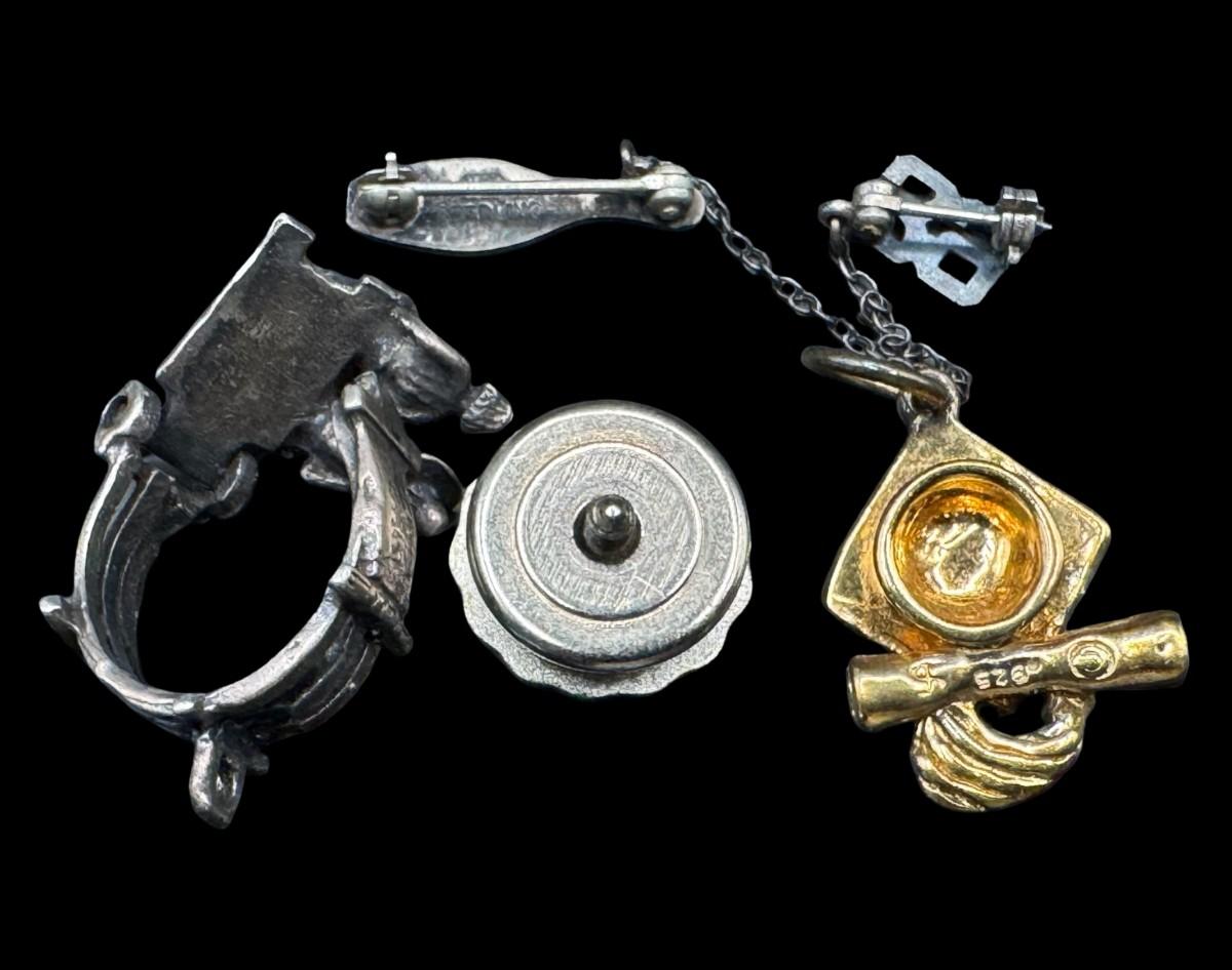 [10.30g] Includes a pin, a charm, and more. Total of four pieces. Silver content confirmed using the Niton XRF precious metals analyzer. [BK]