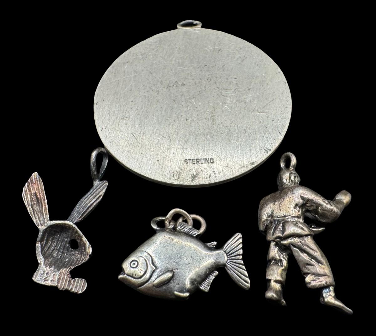 [17.89g] Includes three charms and a pendant. Silver content confirmed using Niton XRF precious metals analyzer. [BK]