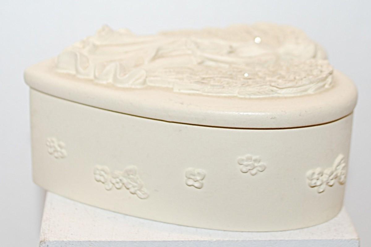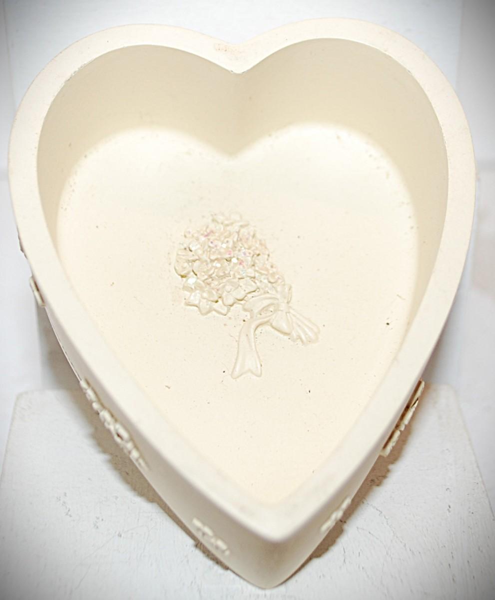 Marked "Angel Star ©2002" -- All White Angel "Heart Shaped" Jewelry "Wishing Box" Trinket Box with Embossed Bouquet INSIDE 3½" x 3 x 1½"