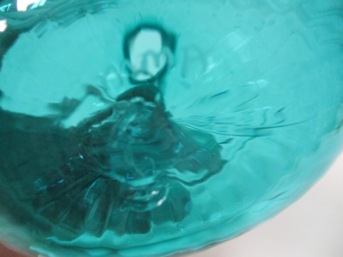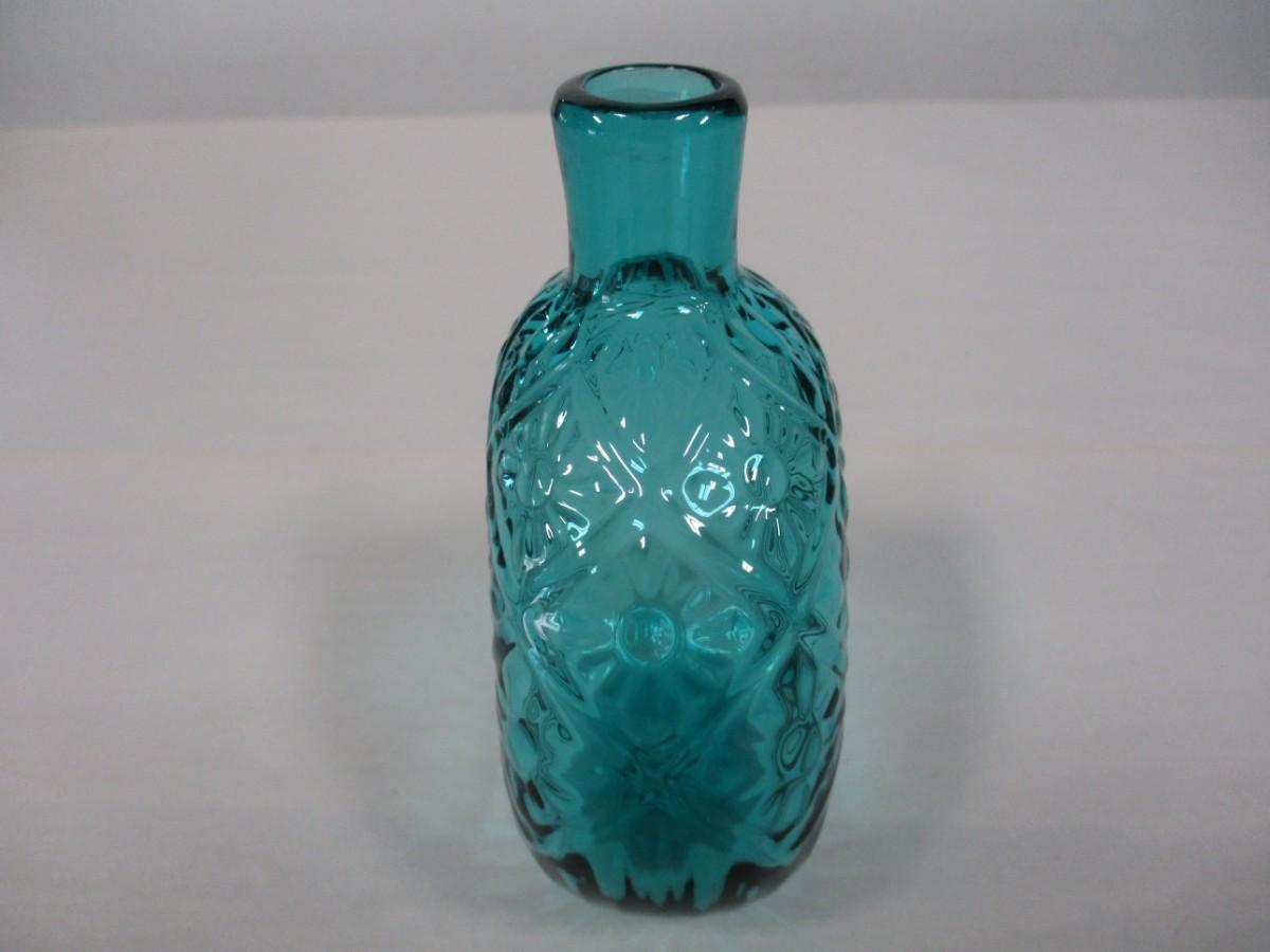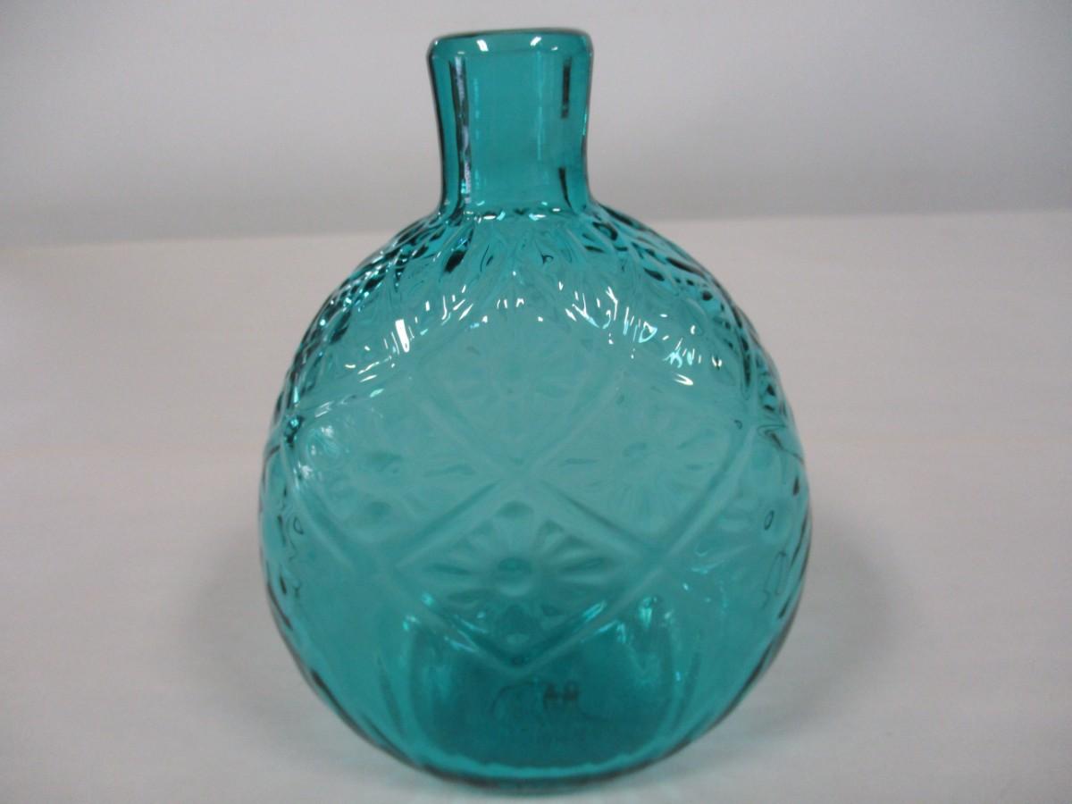 Marked Aqua Teal Blown Glass Flask Bottle