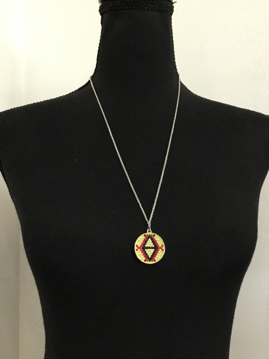 Marked Beautiful native American, crystal rhinestone pendant necklace. Very nice quality.