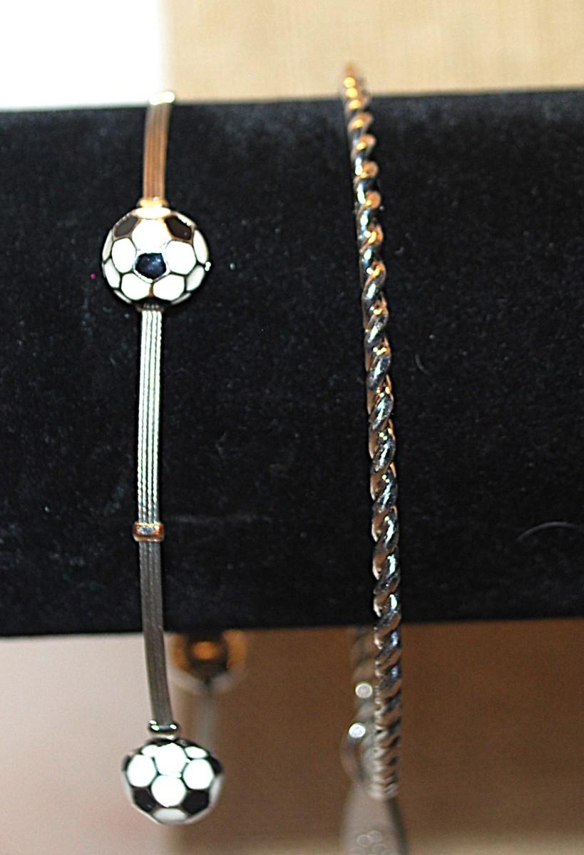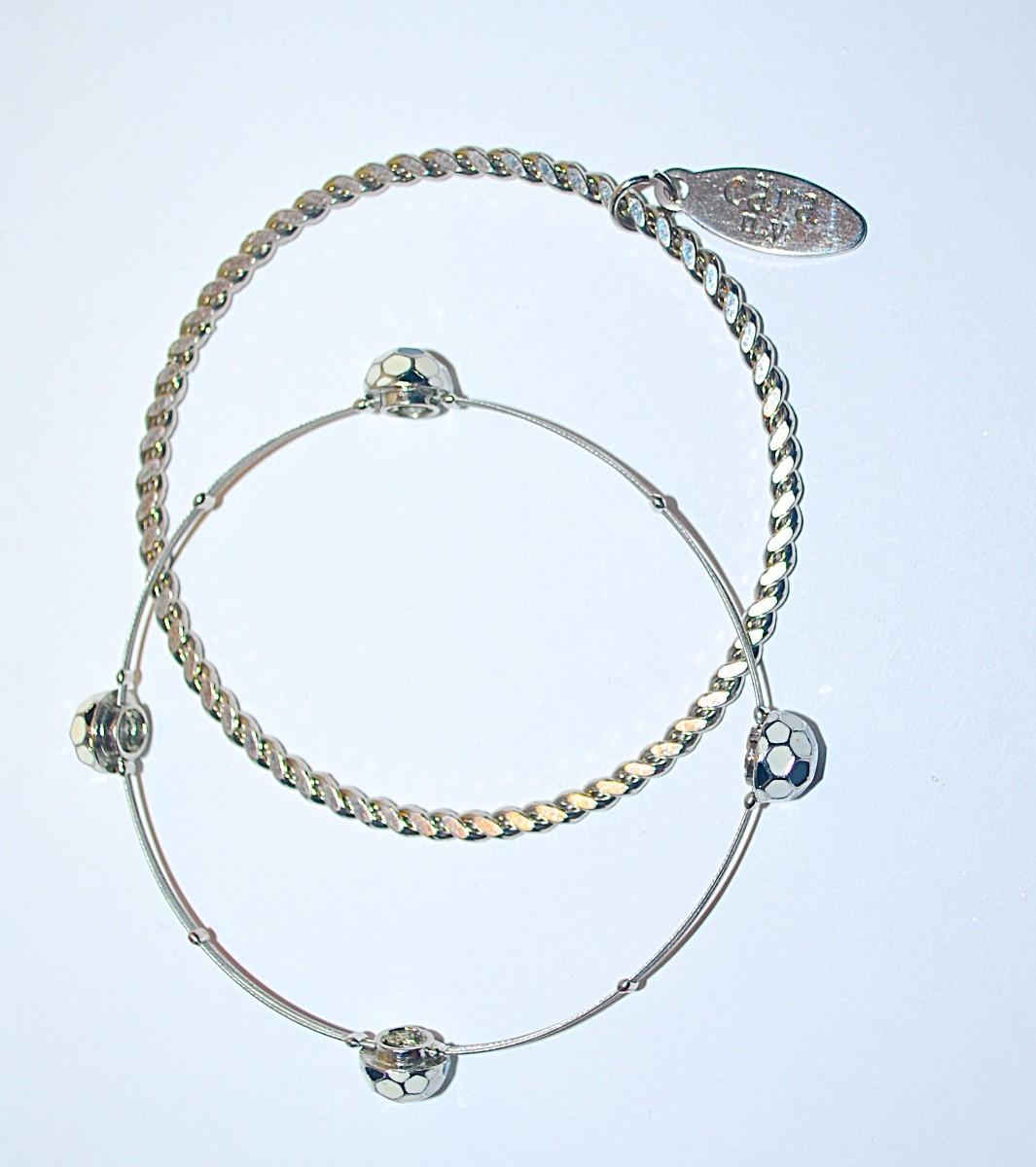 Marked "CARA NY" Silver Tone BRACELET (2½" Opening) and Silver Tone Flexible Soccer Bracelet