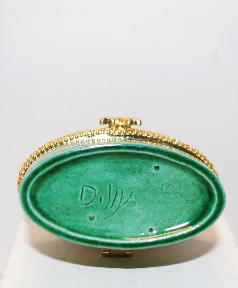 Marked Dilly -- "Dilly MFG. Inc -- Lighthouse & 2-Story House" Jewelry Hinged Trinket Box 4½" x 2½"