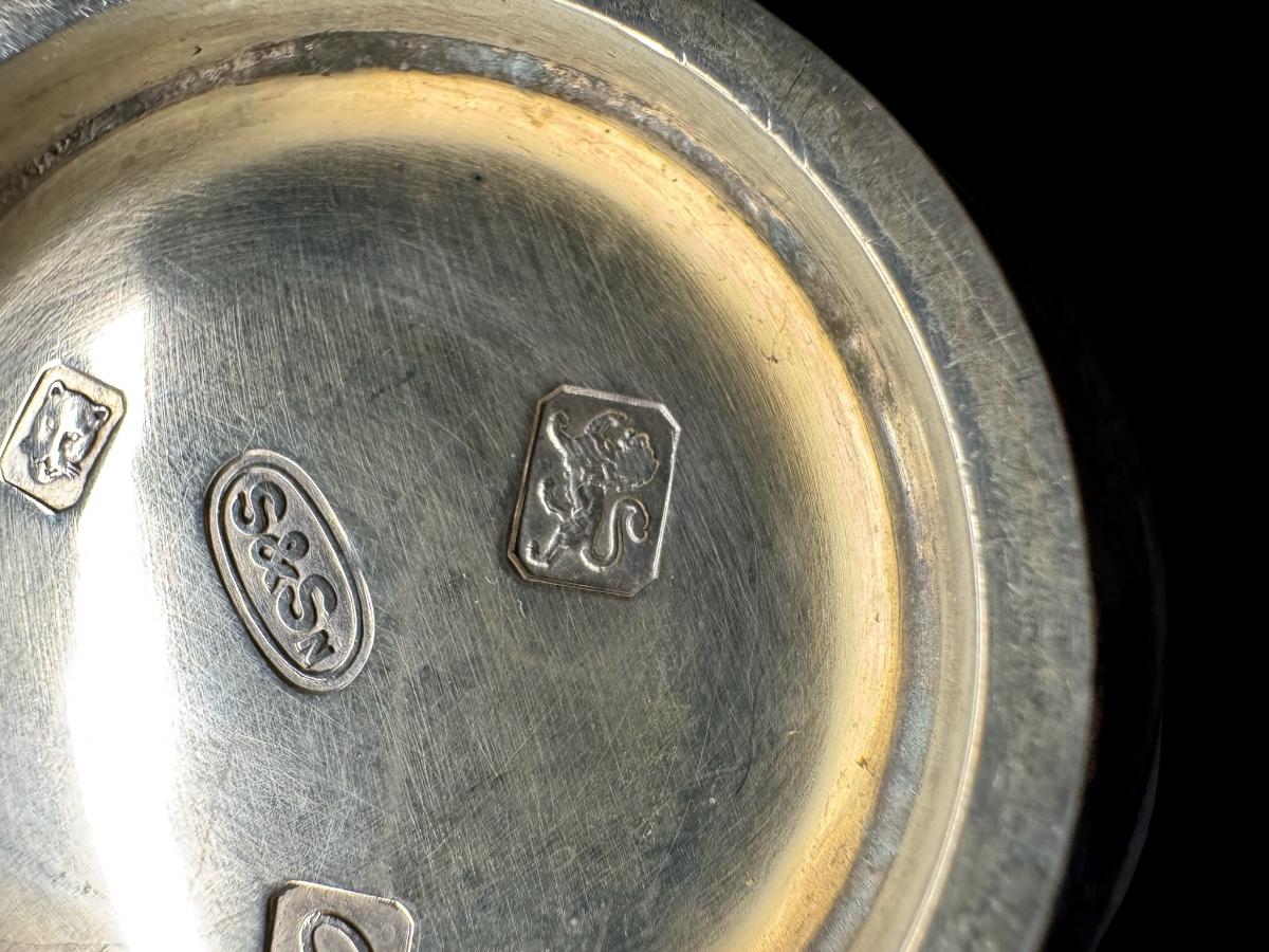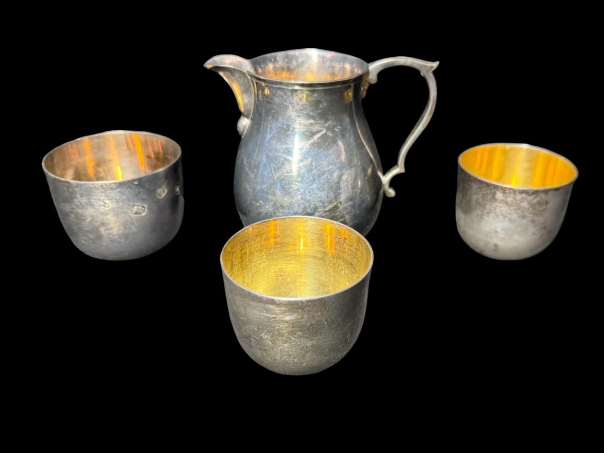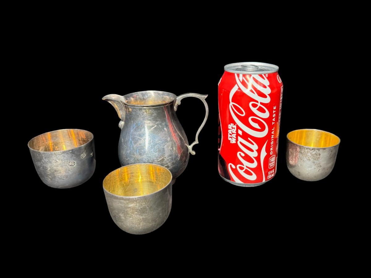 **WIRE TRANSFER IS REQUIRED IF SHIPPED.** [470g] Includes an S&Sn marked creamer, two H.H. Plante cups, and an AHN marked cup. Total of four pieces. Pre-auction estimate: $800-$900. **ALL PRECIOUS METALS SALES ARE FINAL. NO REFUNDS WILL BE GIVEN FOR ANY REASON.** [JL]