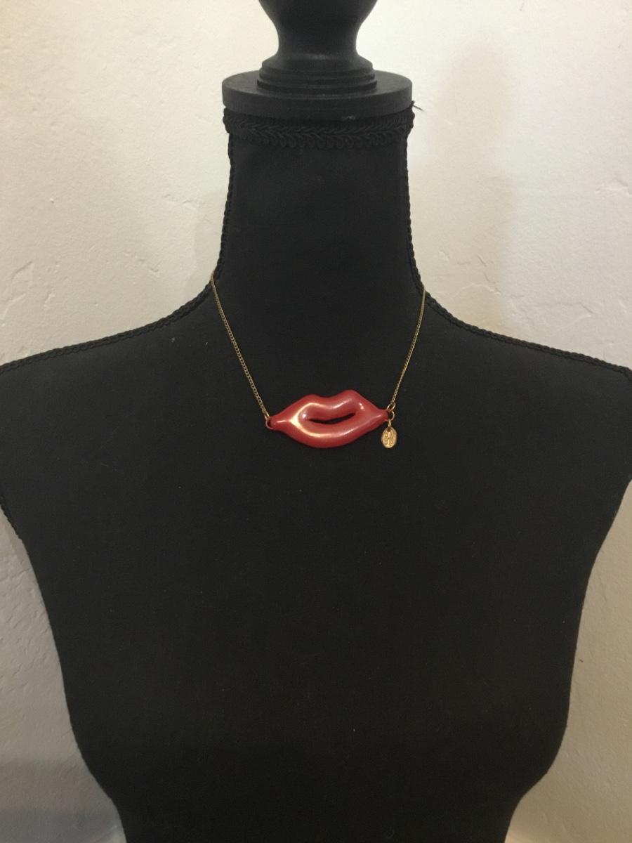 Marked red squishy, vintage lip necklace