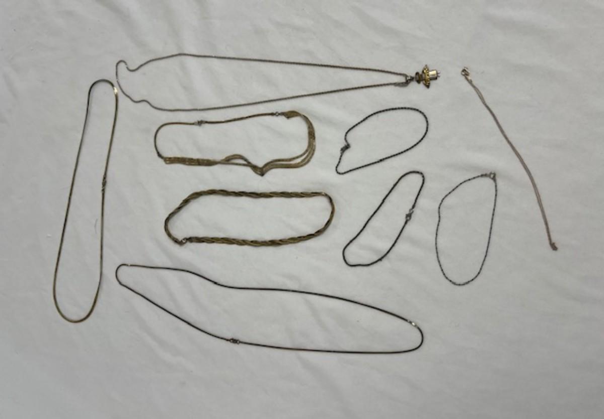 **WIRE TRANSFER IS REQUIRED IF SHIPPED.** [63.79g] Includes chains, charms, and bracelets. Total of 9 pieces. [ST]