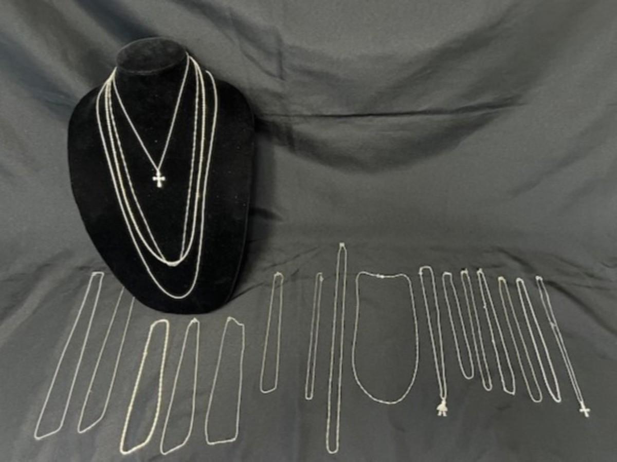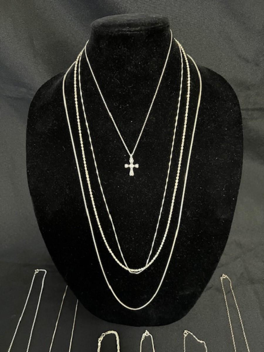 **WIRE TRANSFER IS REQUIRED IF SHIPPED.** [69.13g] Includes 20 chains; four have pendants. Measurement of longest: 36"L. [ST]