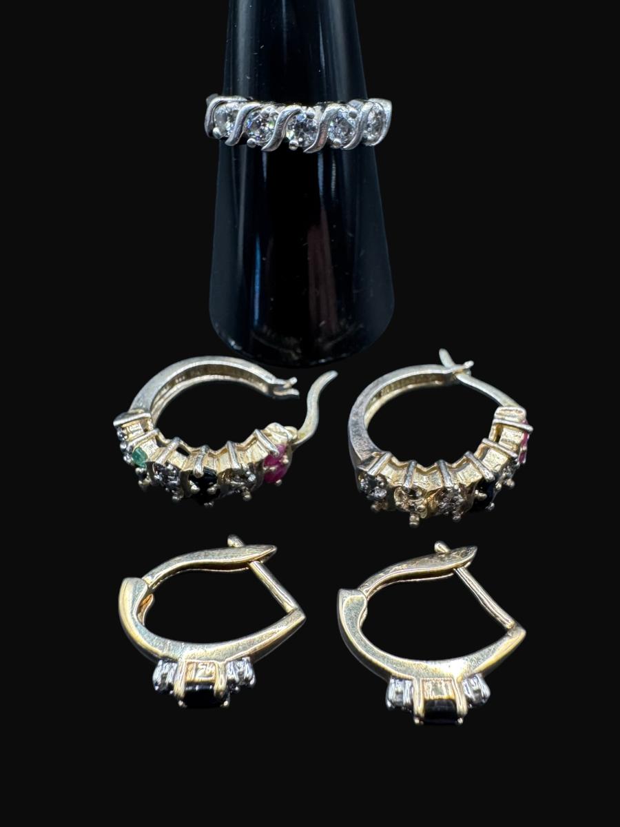 **WIRE TRANSFER IS REQUIRED IF SHIPPED.** [10.82g] Includes two pairs of earrings with semi-precious stones, and a ring with cubic zircon stones. **ALL PRECIOUS METALS SALES ARE FINAL. NO REFUNDS WILL BE GIVEN FOR ANY REASON.** [KB]