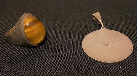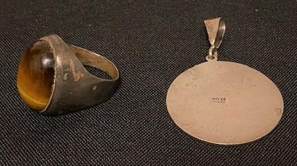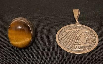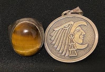 Lot#356: Marked Sterling Silver Lot Including Tiger's Eye Ring & Native Pendant (32.21 grams)