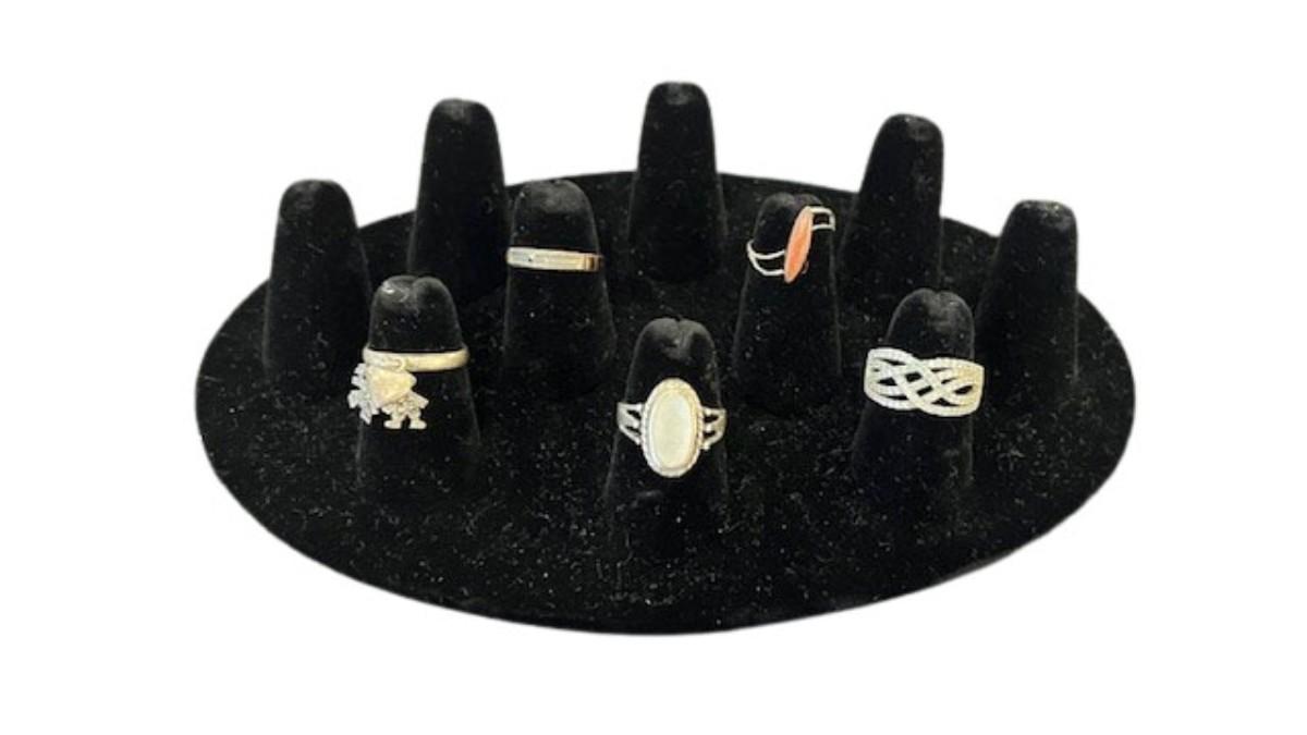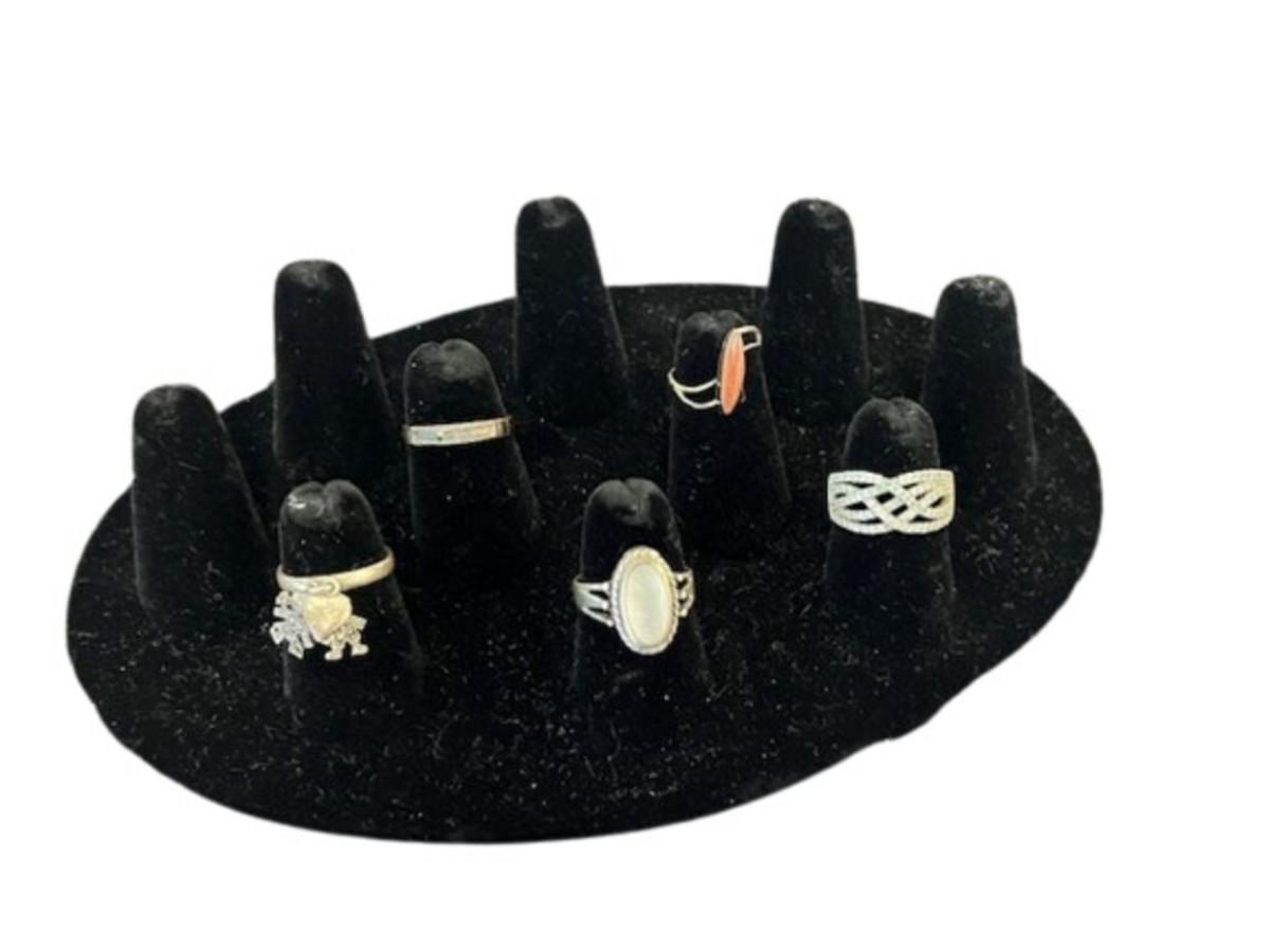 **WIRE TRANSFER IS REQUIRED IF SHIPPED.** [15.69g] Includes five rings. Sizes range from 4.5 to 7.5. [ST]