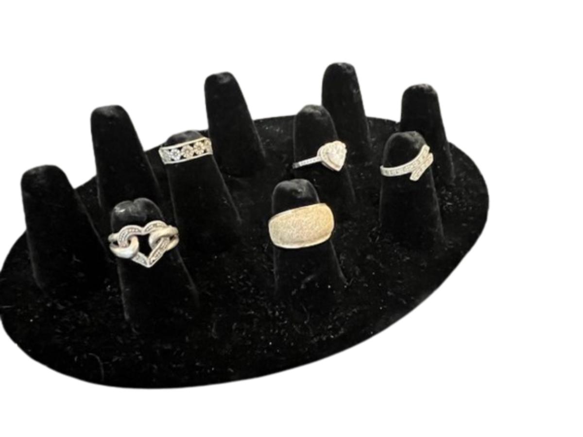 **WIRE TRANSFER IS REQUIRED IF SHIPPED.** [16.05g] Total of 5 rings. Sizes range from 4.5 to 8. [ST]