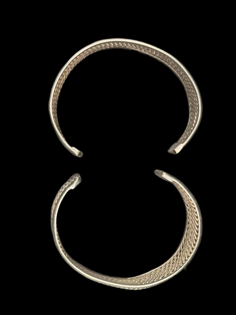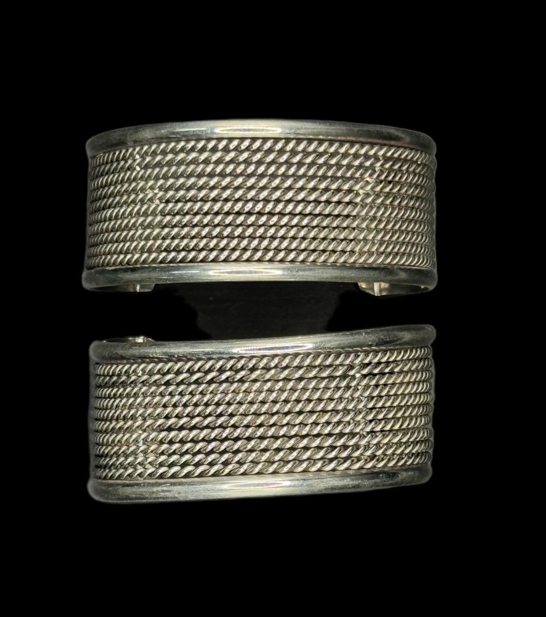 **WIRE TRANSFER IS REQUIRED IF SHIPPED.** [85.25g] Includes a pair of Taxco reticulated sterling bracelets. Measurement: 2.5” Diameter (each). **ALL PRECIOUS METALS SALES ARE FINAL. NO REFUNDS WILL BE GIVEN FOR ANY REASON.** [RM]