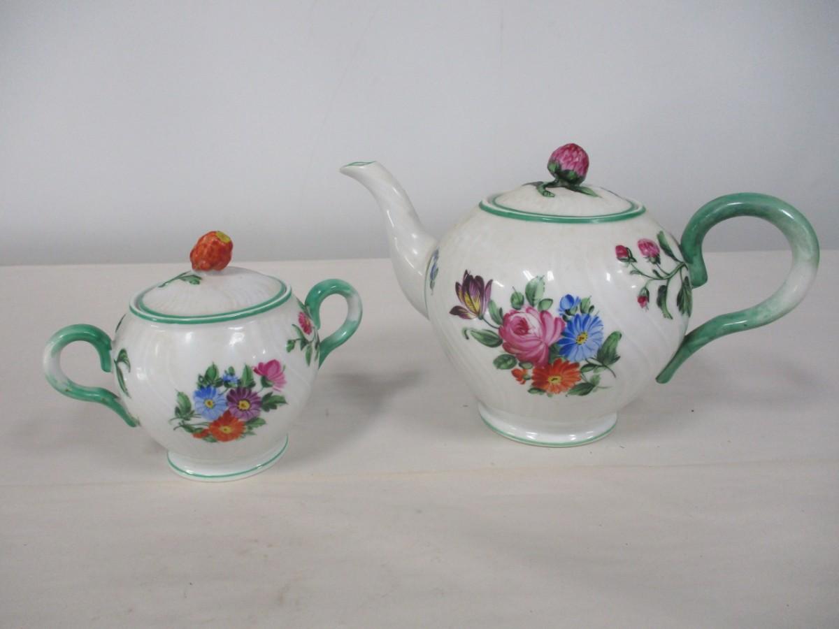 Vintage Czechoslovakia Schlaggenwald 1792 Porcelain Teapot and Sugar Bowl